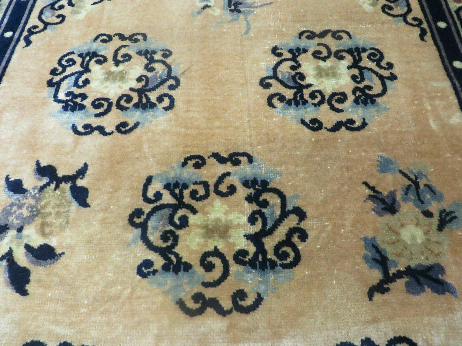 Antique Handmade Peking Chinese Wool Rug 1950s Vintage 47 By 71 Inches Blue And Salmon