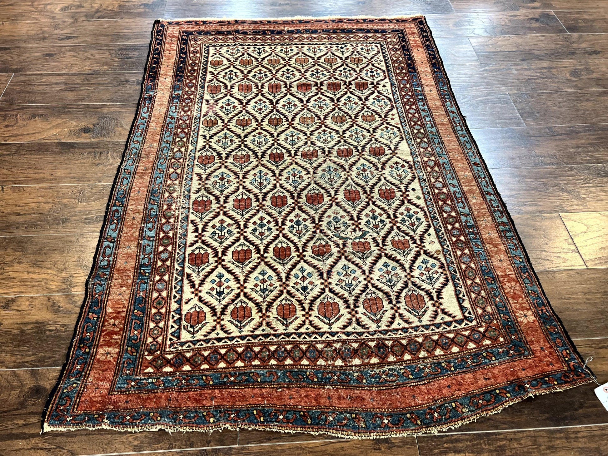 Antique Caucasian Rug 4x6 Hand Knotted Wool Shirvan Carpet