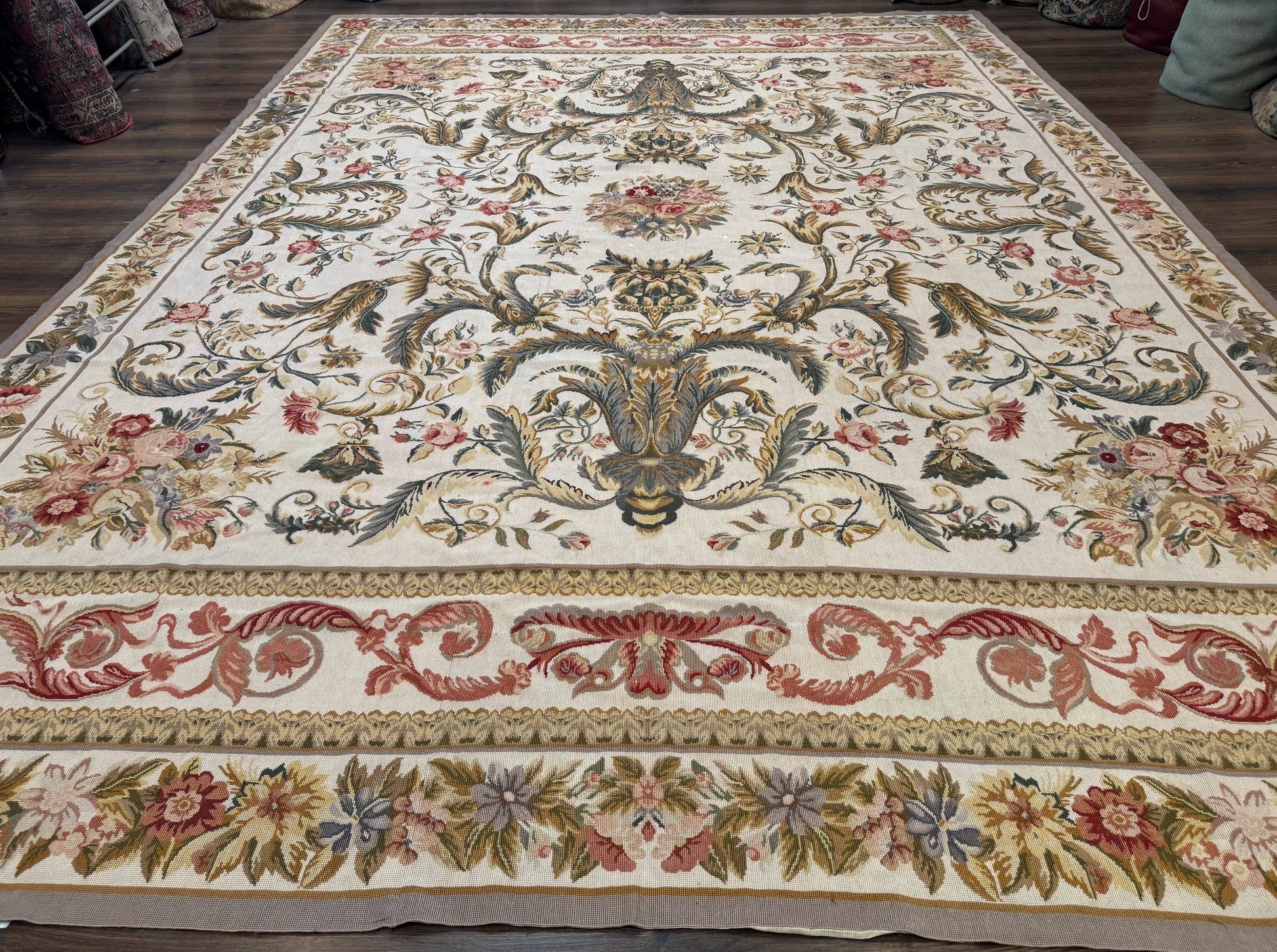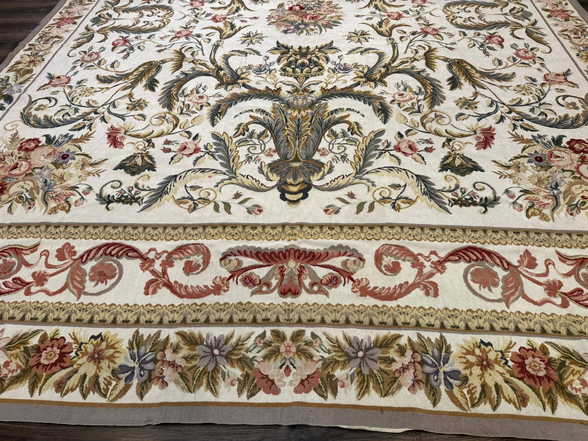 Aubusson Needlepoint Rug 10x14 Elegant European French Carpet Vintage Wool