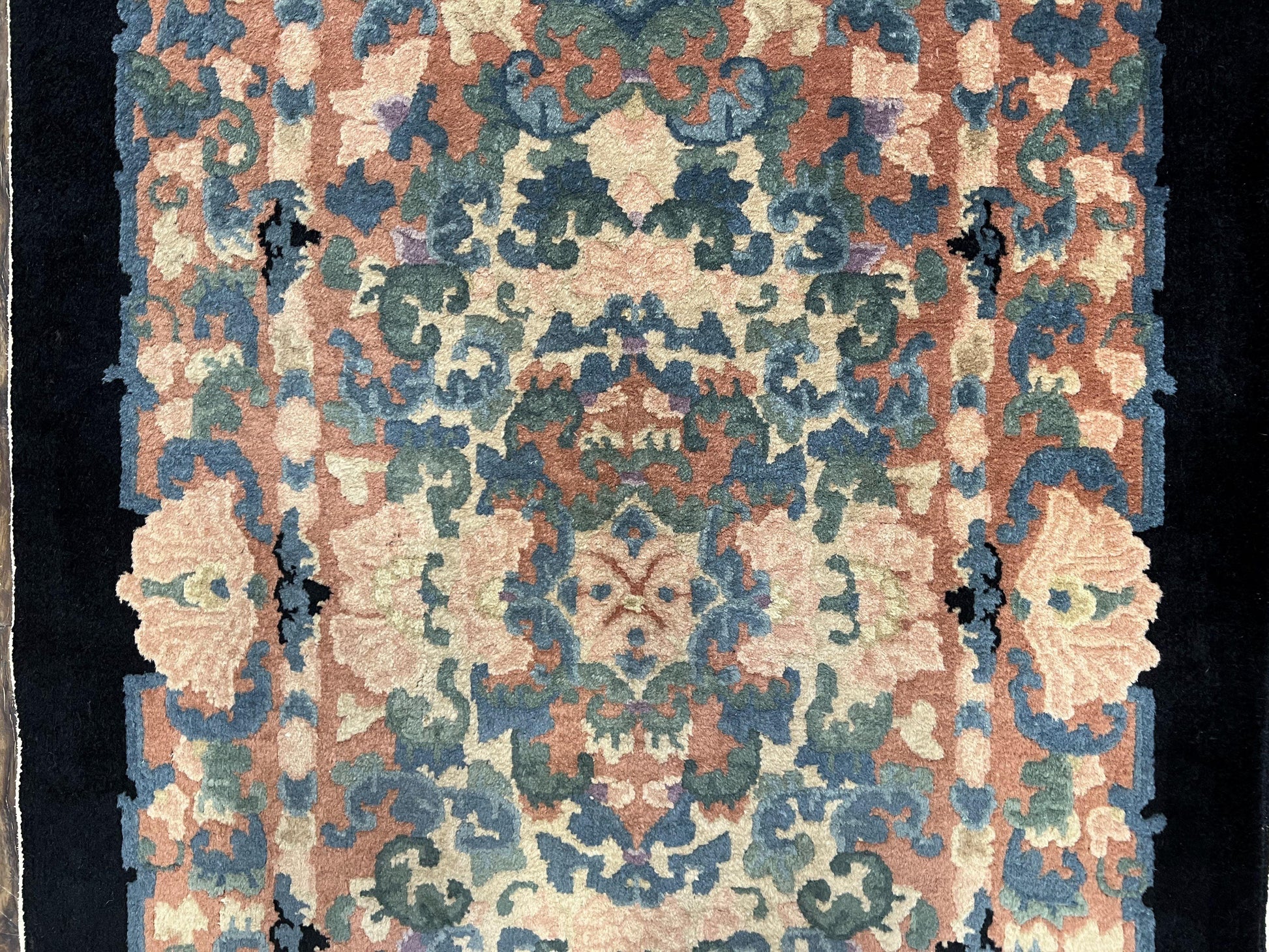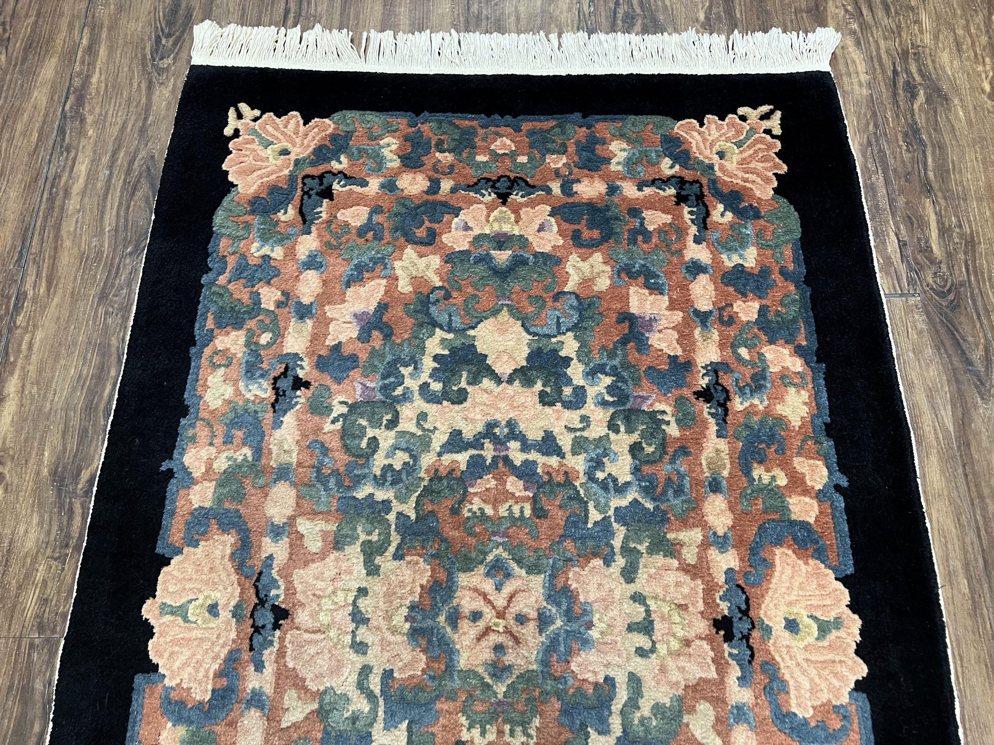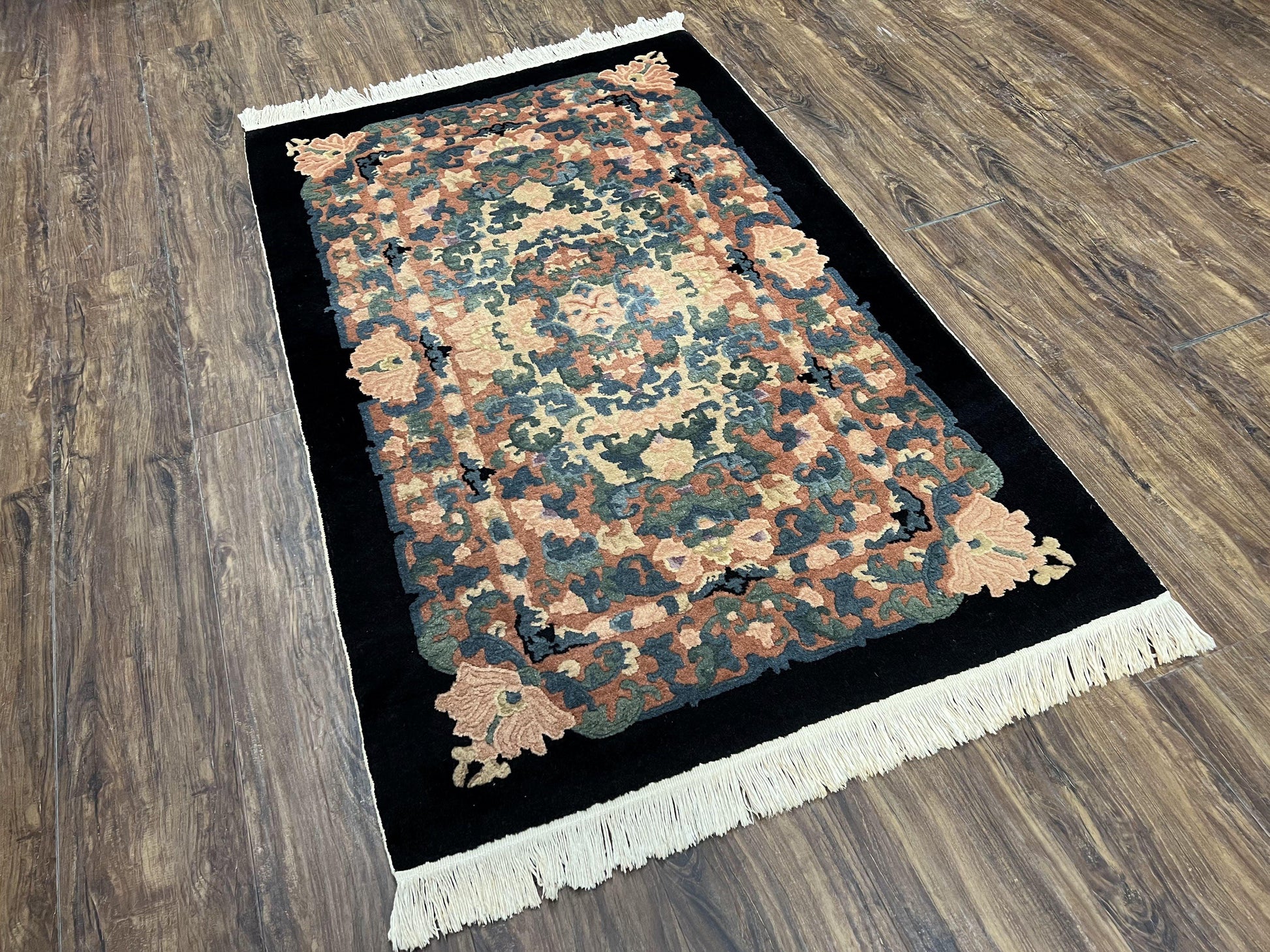 Art Deco Rug Chinese Handmade Wool 3x5 Vintage Floral Black Beige Carpet