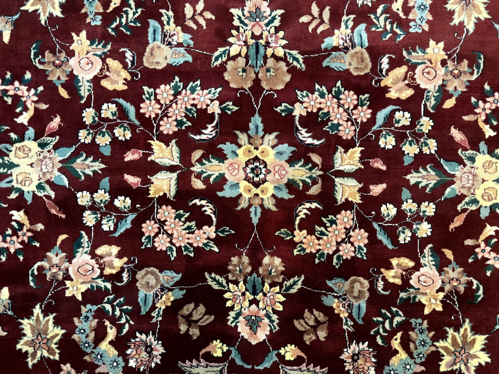 Indo Persian Rug 8x10 Handmade Wool With Floral Bird Pictorials In Maroon And Navy