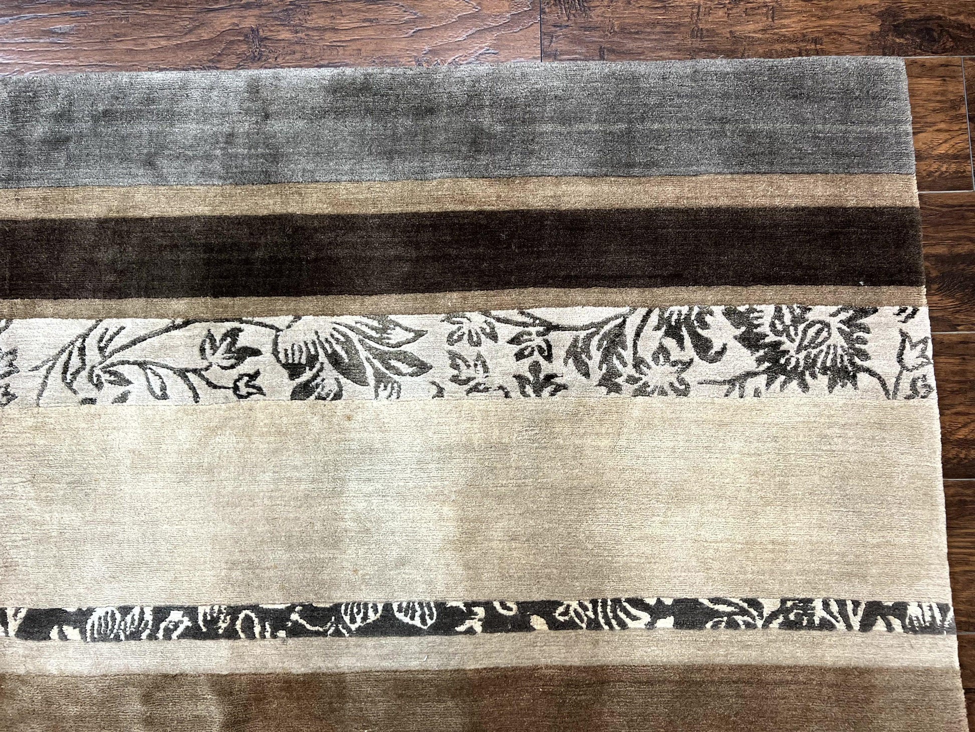 Tibetan Nepali Rug Handmade Wool With Silk Highlights And Stripe Pattern 8x12