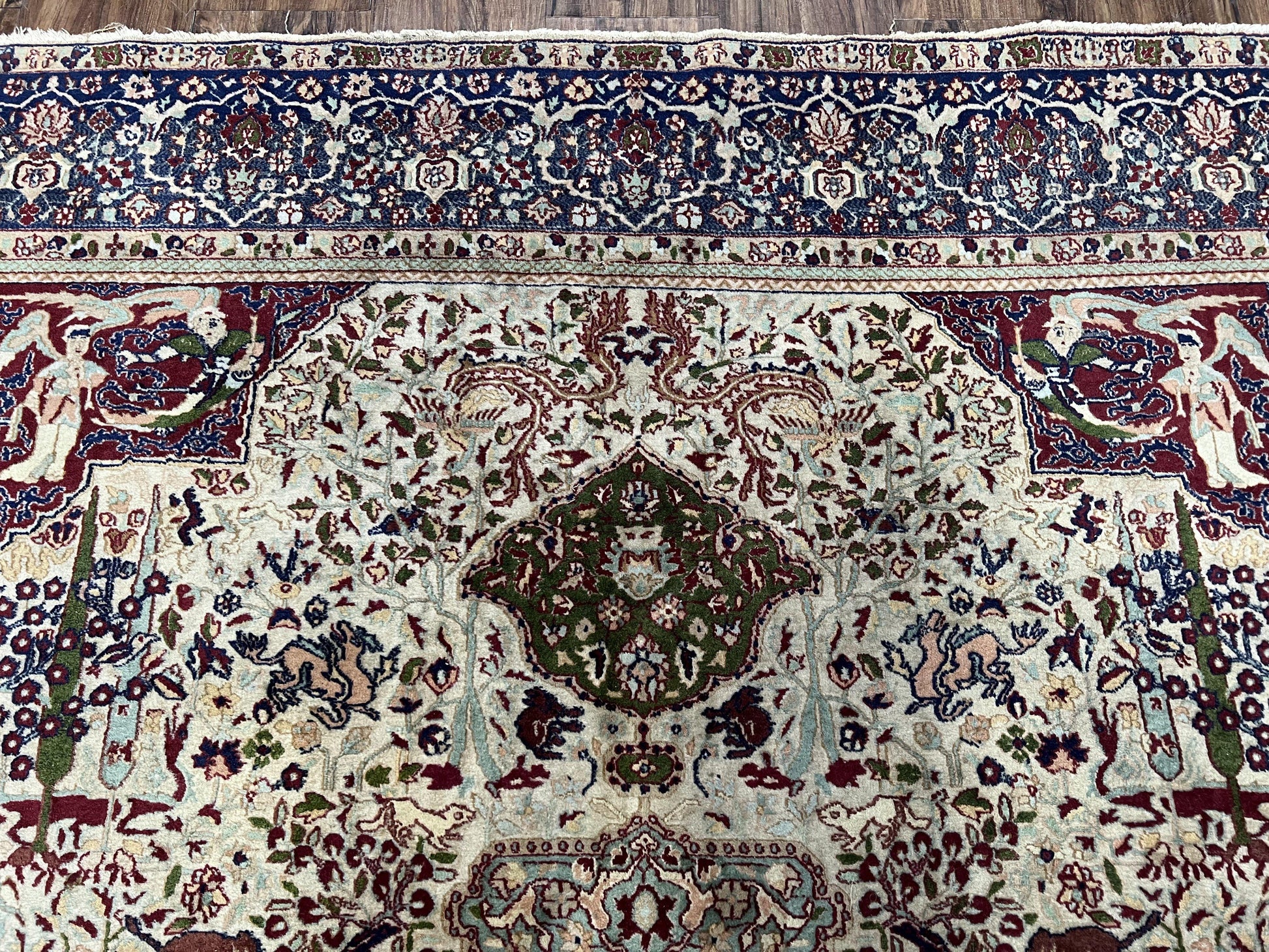 | Condition/Notes | A rare and highly collectible early 20th century Indian Agra oriental rug in very good condition. Features a multitude of animal and angel motifs. Free of stains, odors, discolorations, tears, etc. Good pile & fringes. Recently cleaned and ready to be enjoyed in your space. |