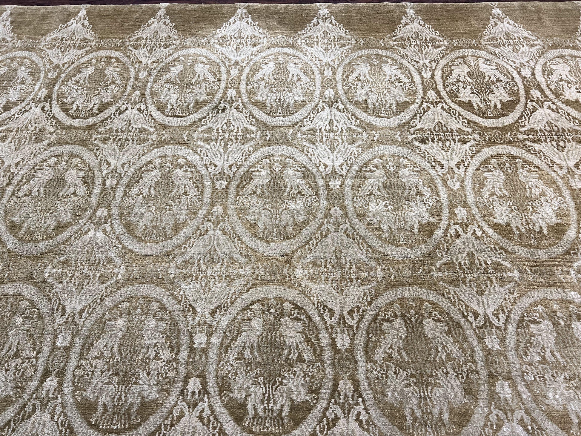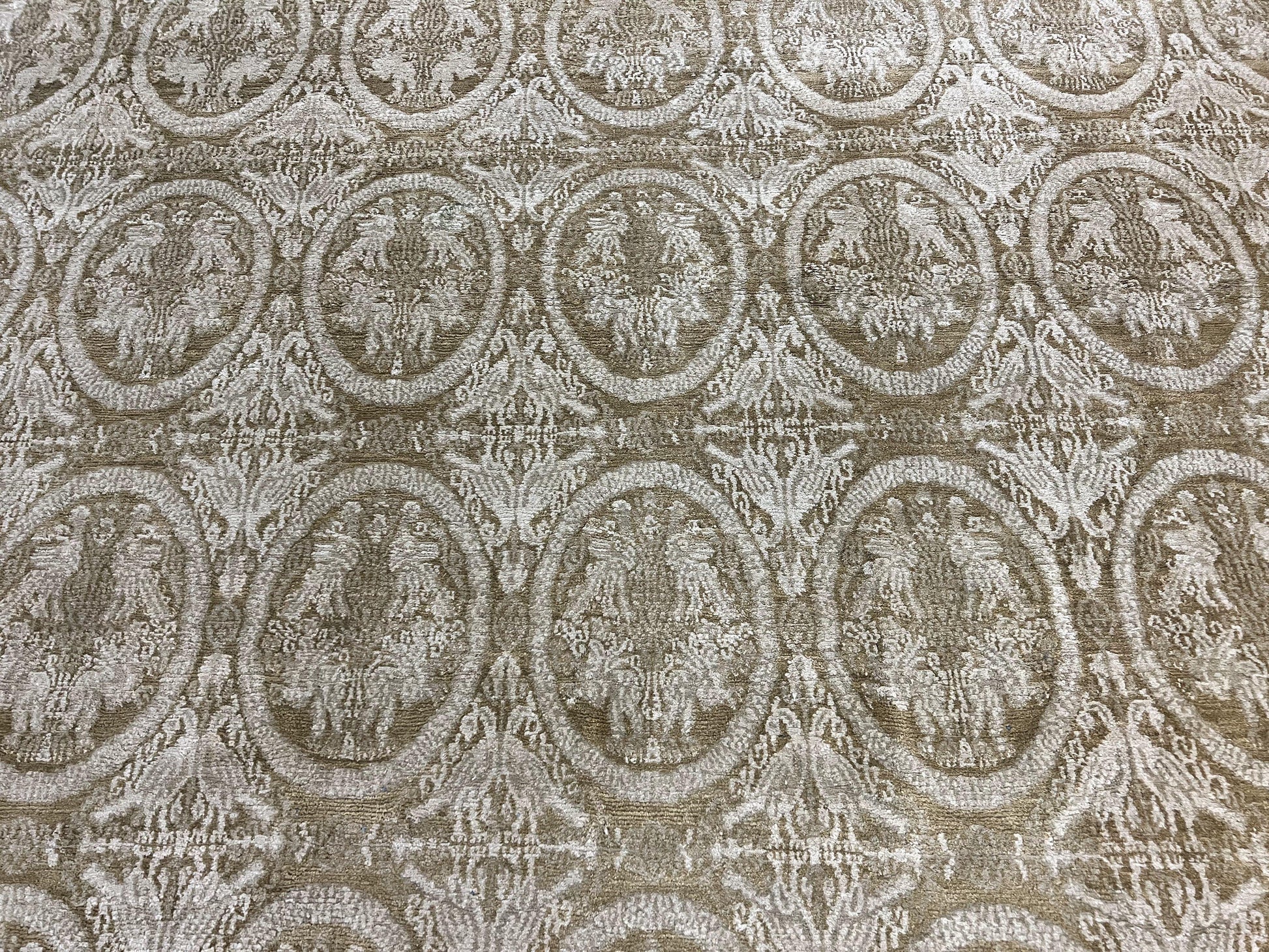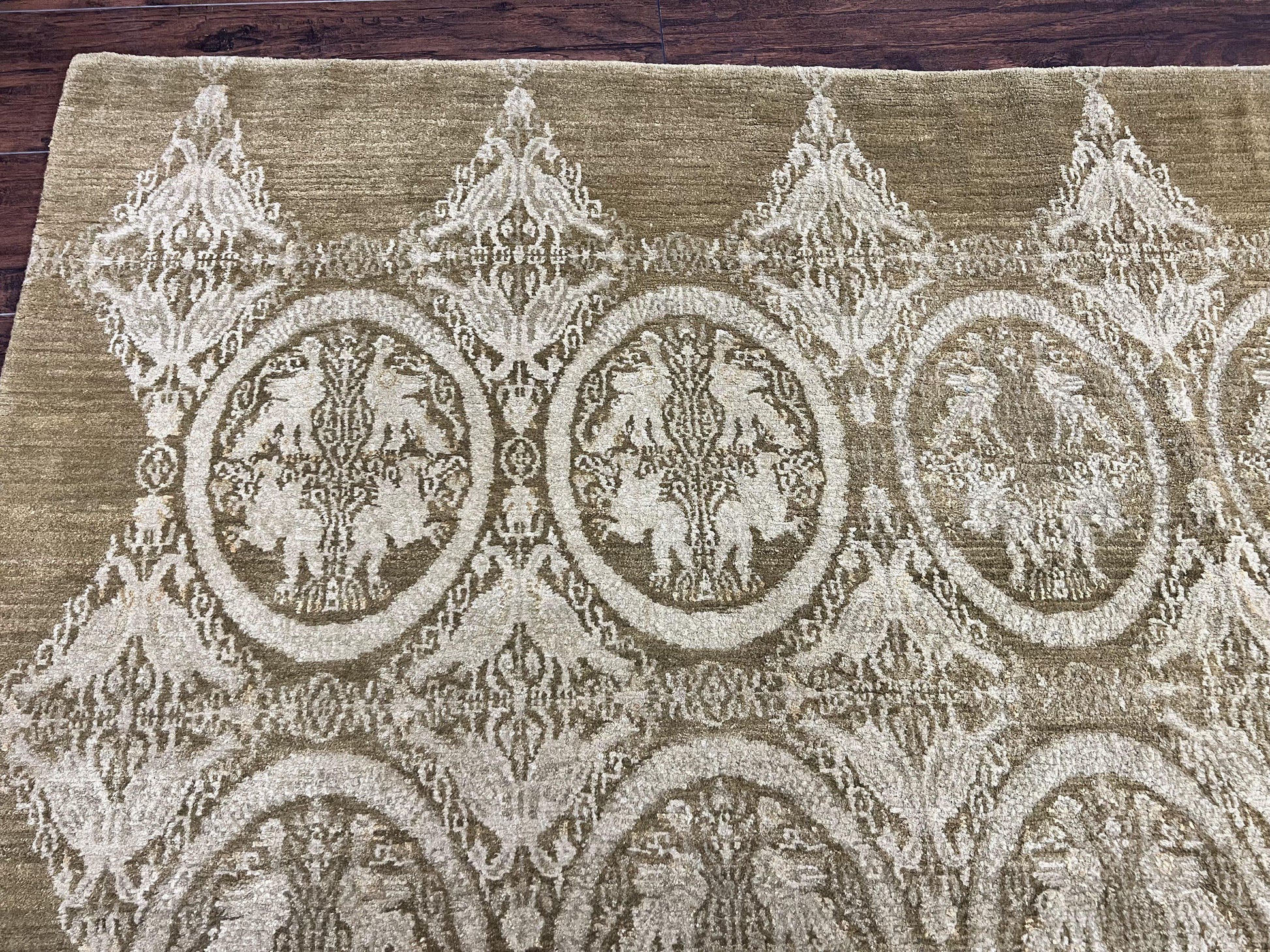 Tibetan Rug 12x15, Wool Hand Knotted Carpet, Odegard Rug, Birds, Olive Green, 12 x 15 Oversized Handmade Contemporary Area Rug, Extra Large