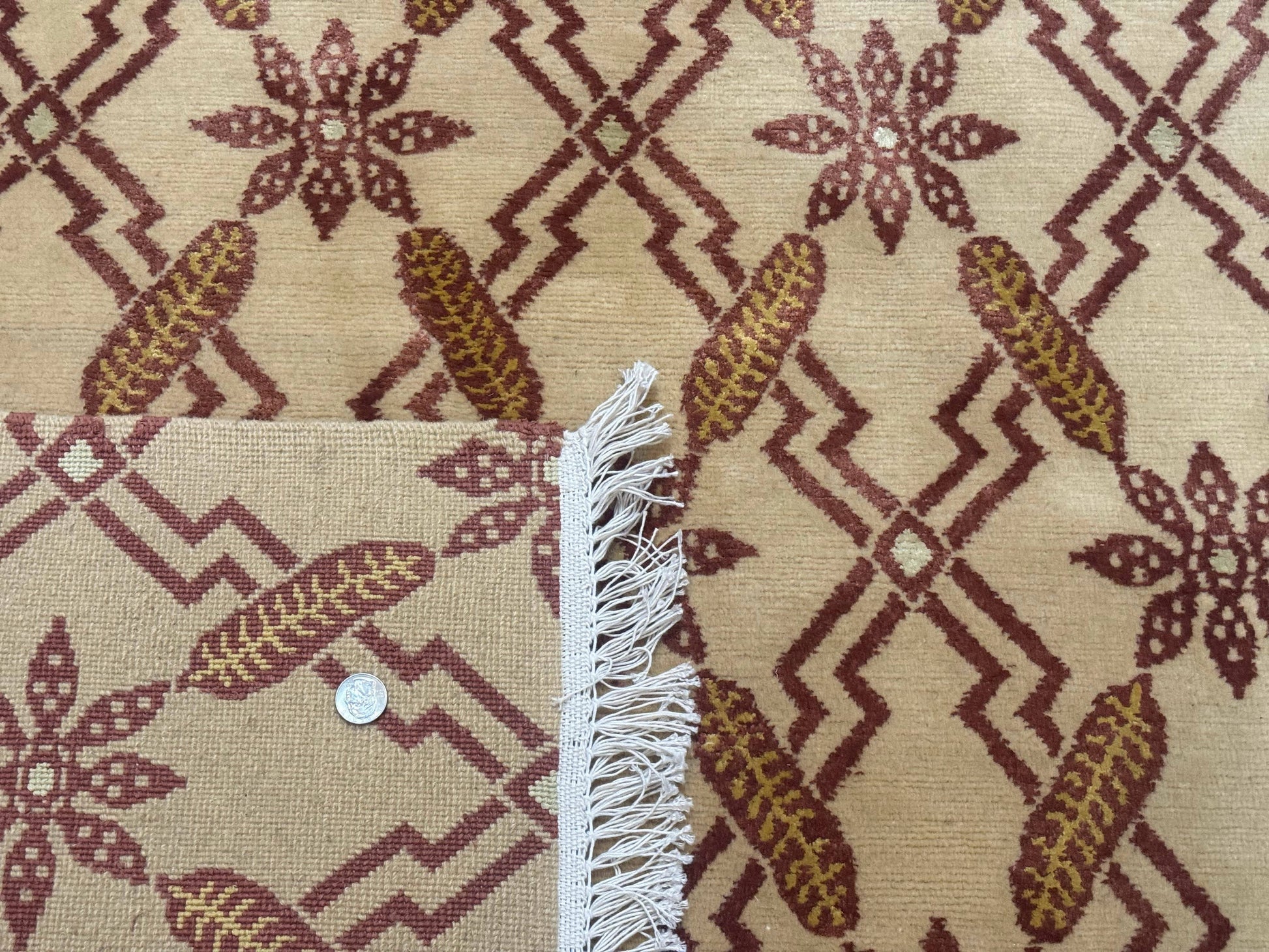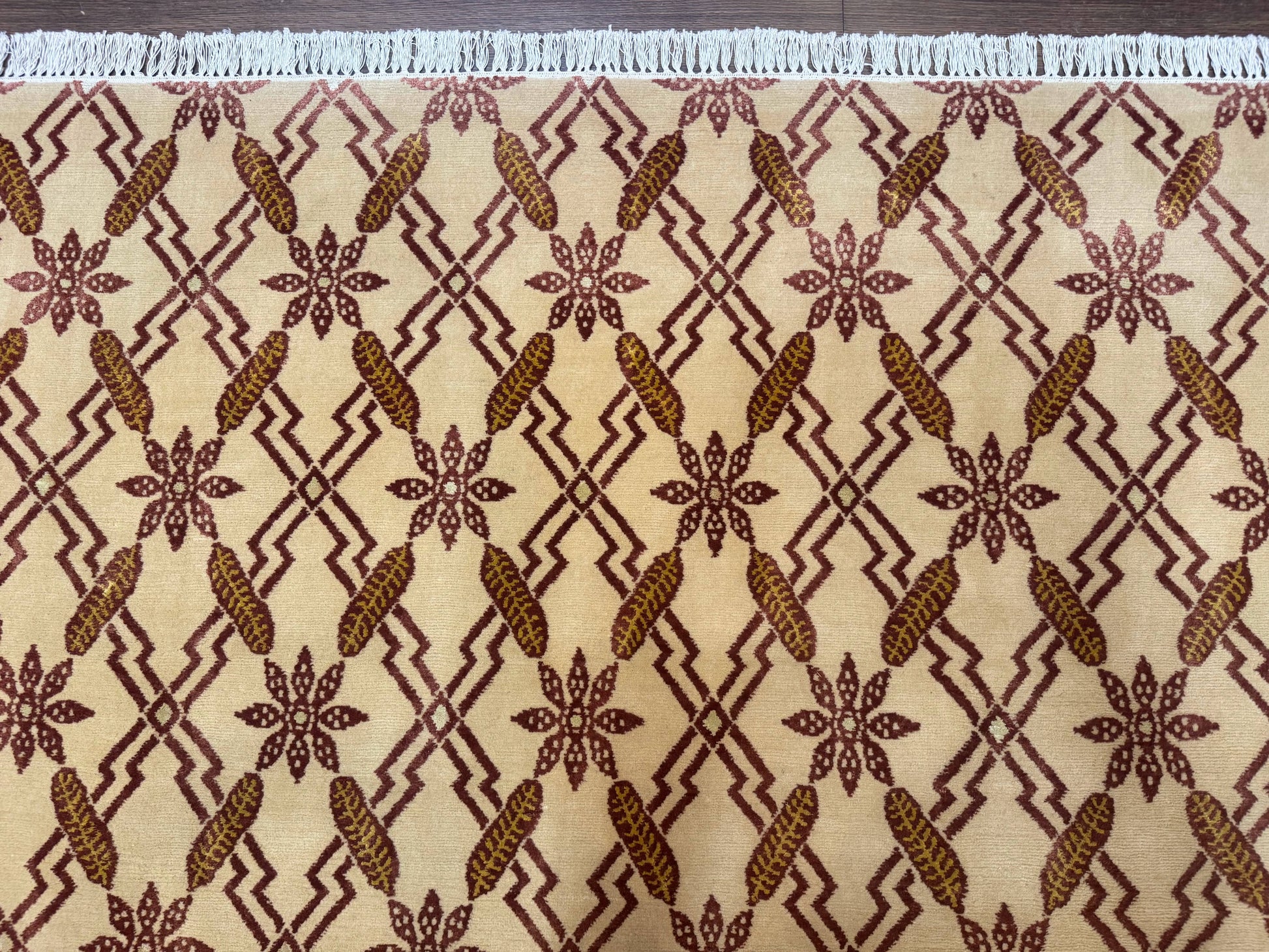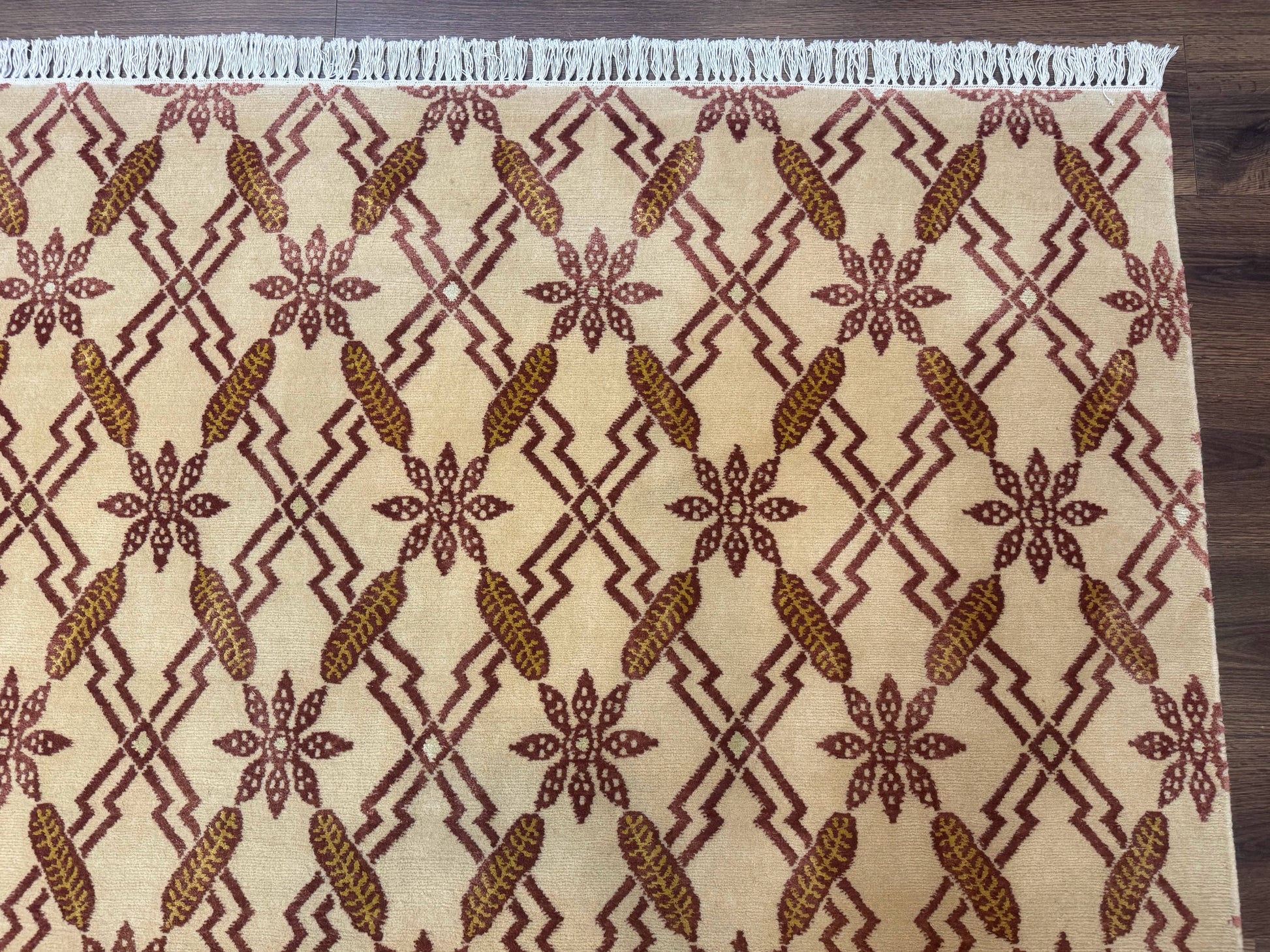 Tibetan Rug 8x10 Wool Silk Highlights Contemporary Carpet Beige And Maroon