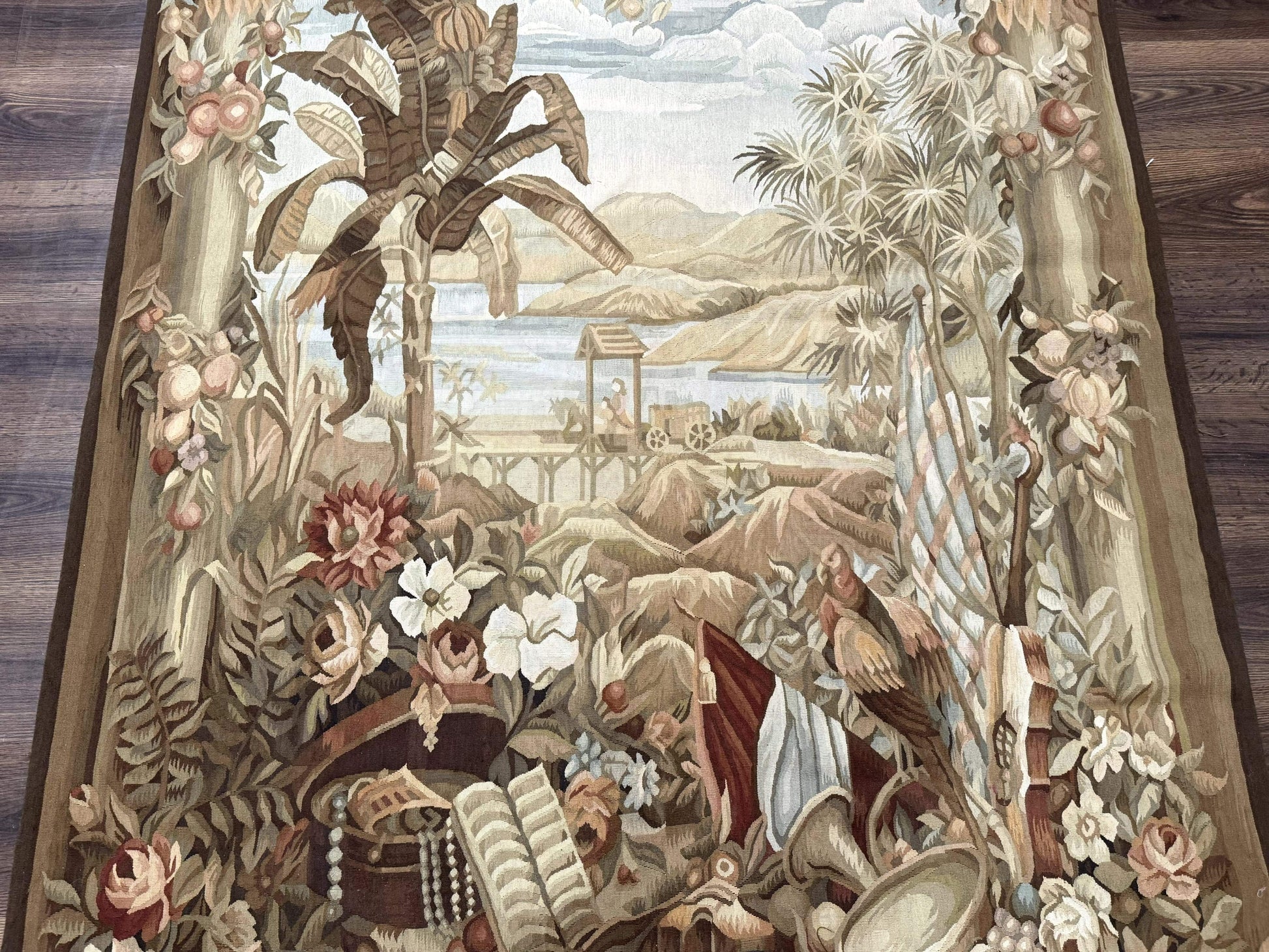 Aubusson Tapestry Wool French Handmade Vintage Wall Hanging 5x7