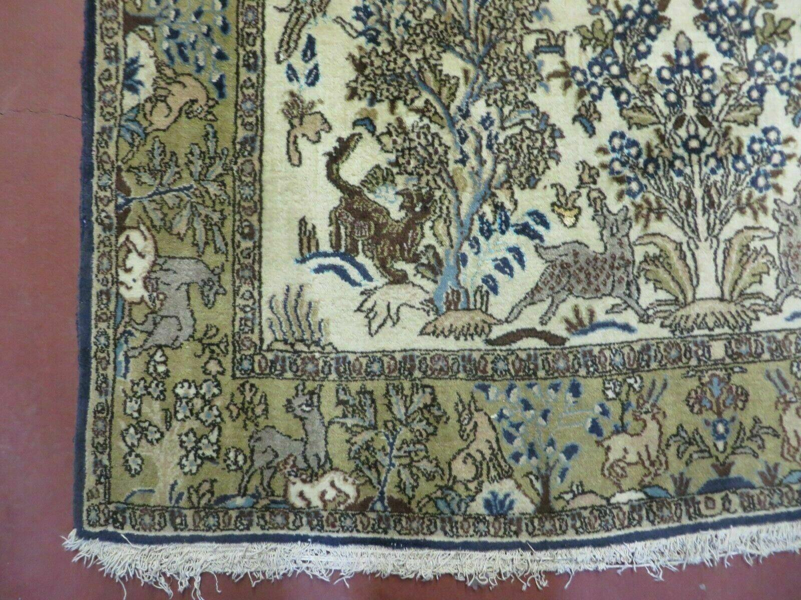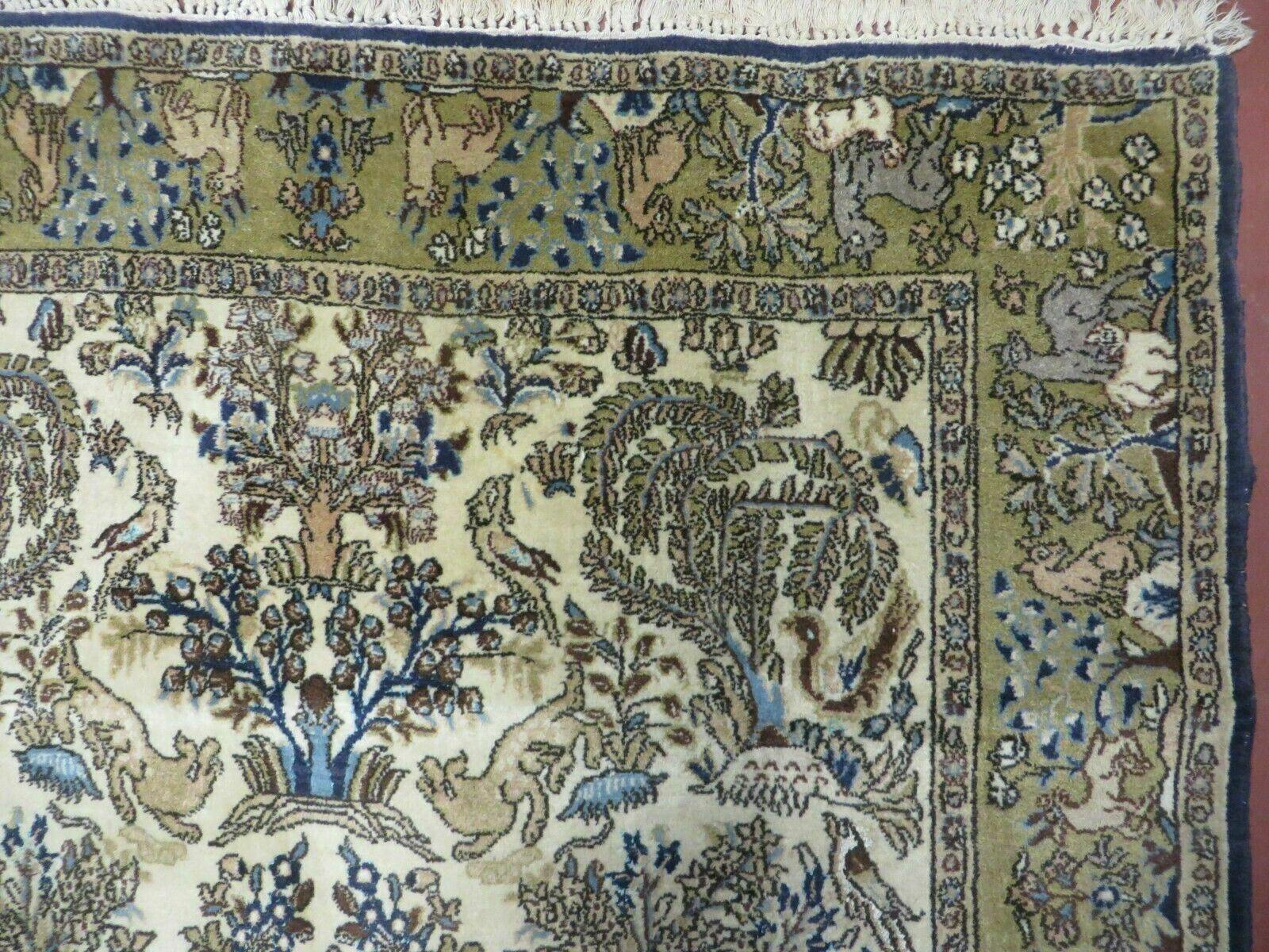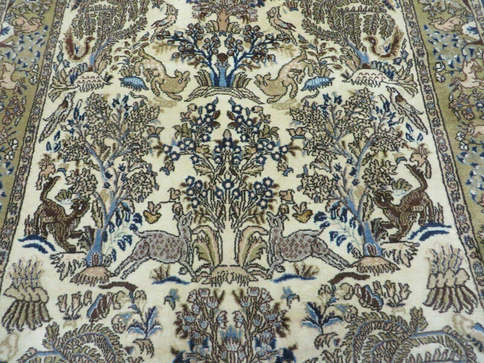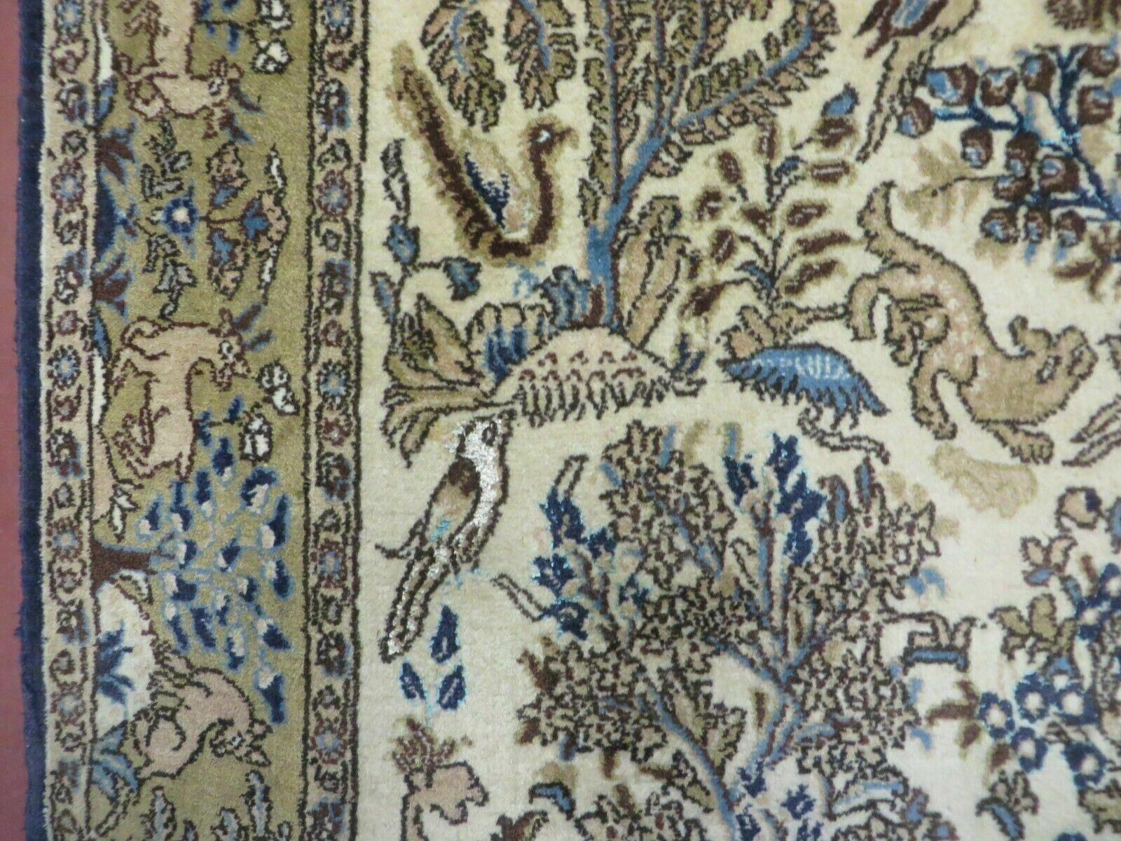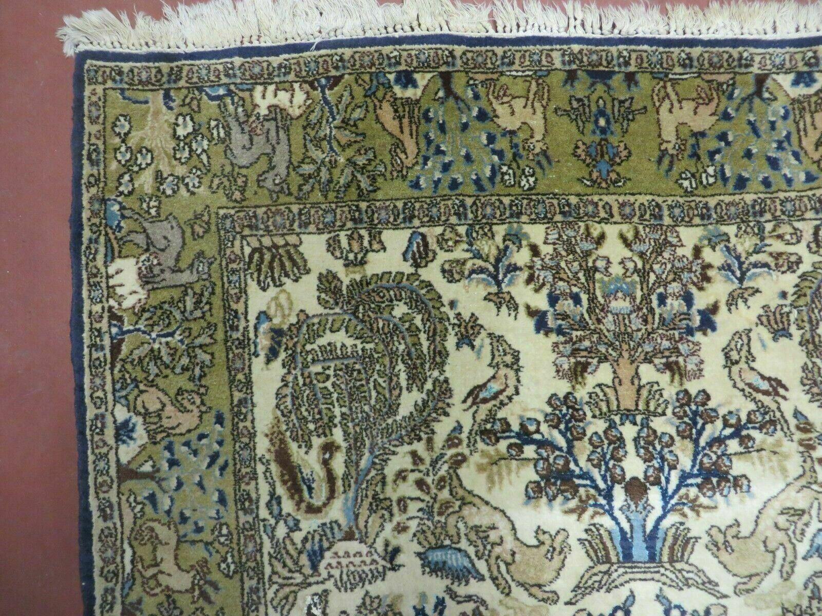 Handmade India Tree Of Life Rug Wool Silk 4x6 Oriental Pictorial Birds Deer Vintage 1960s