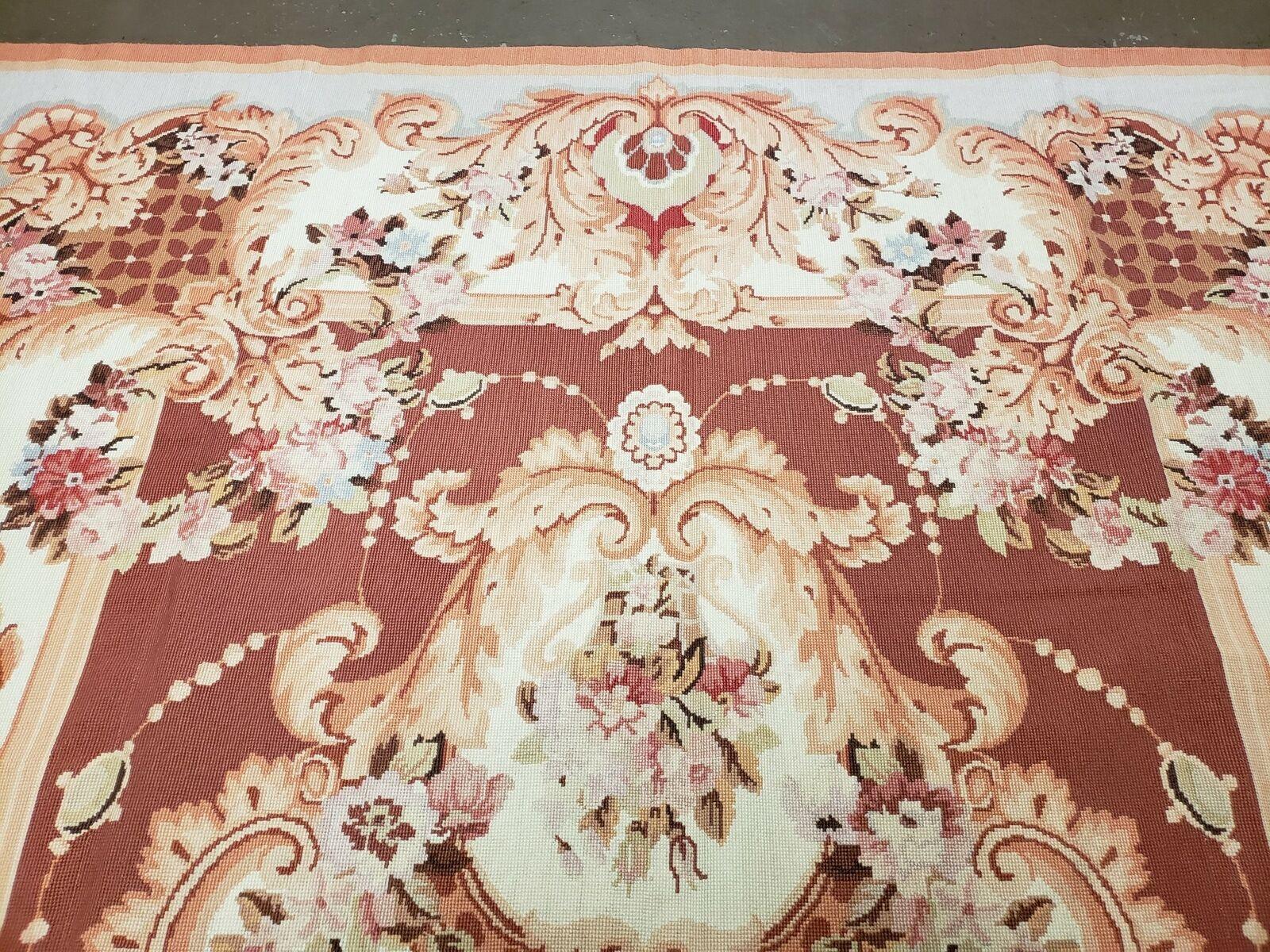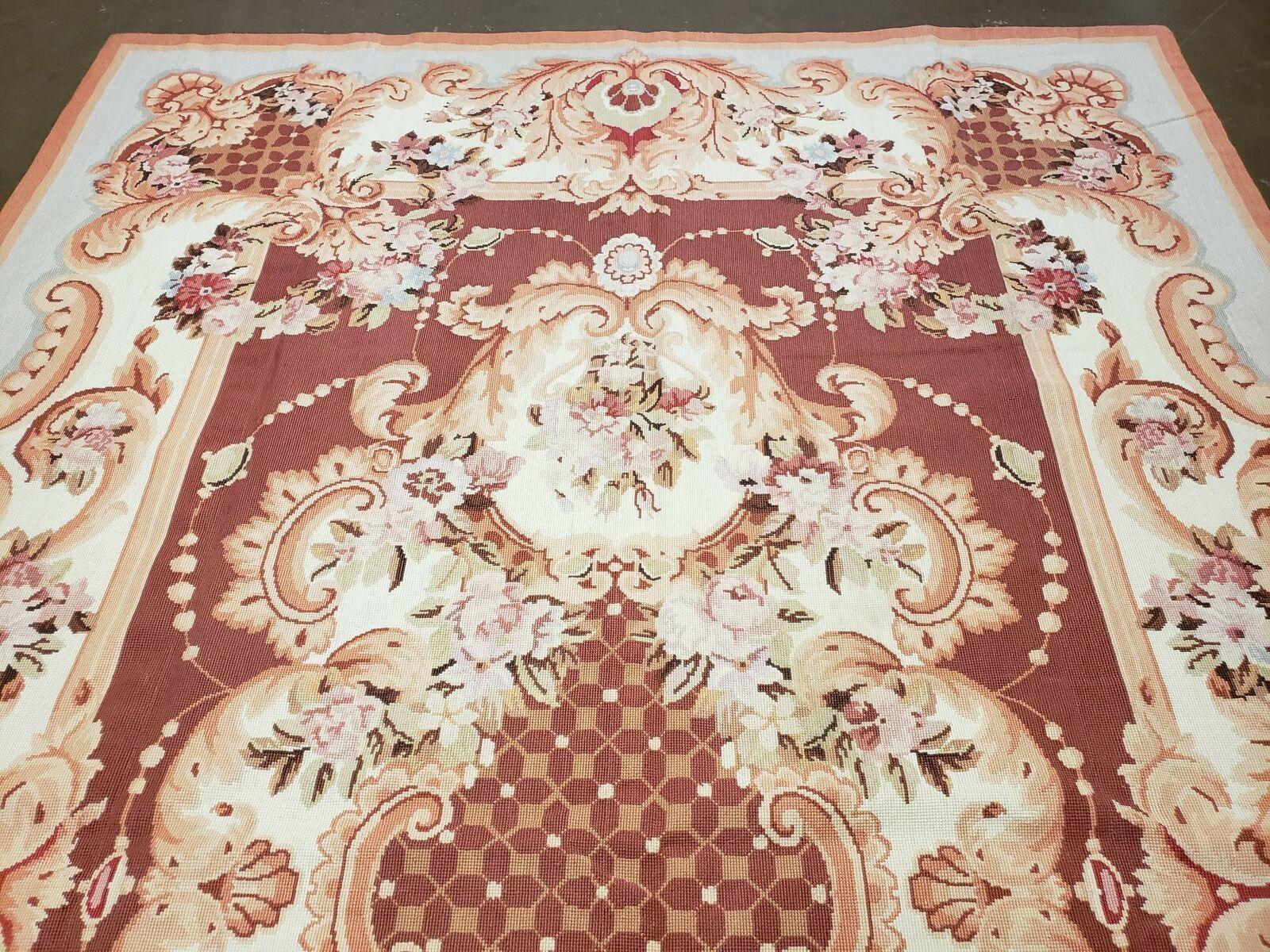 Vintage Chinese Needlepoint Wool Rug Flat Weave 6 By 9 Ft Handmade 1980s