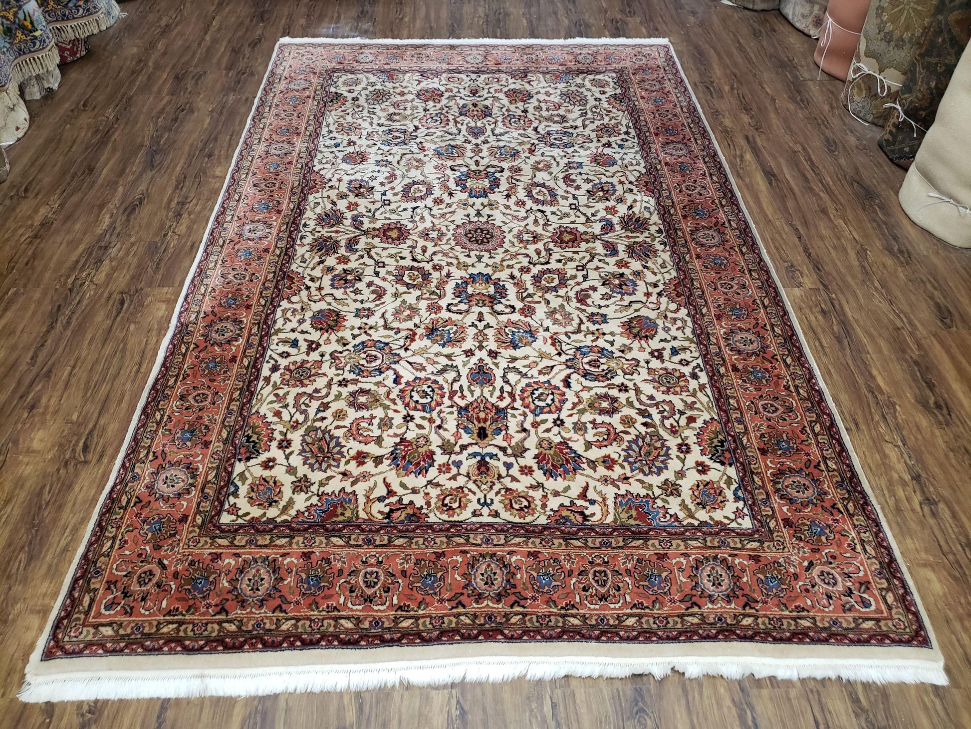 Introduction This vintage handmade, hand-knotted wool rug is crafted in India and designed for spaces that appreciate lasting floral charm. The beige palette with rust accents and vegetable-dyed colors brings warmth to any living room, bedroom, or hallway.