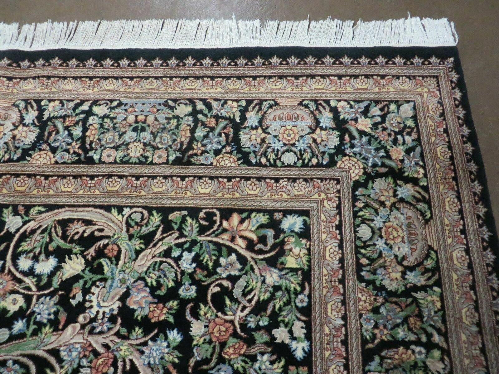Vintage Handmade Pakistani Floral Wool Rug 8x10 Black Full Pile