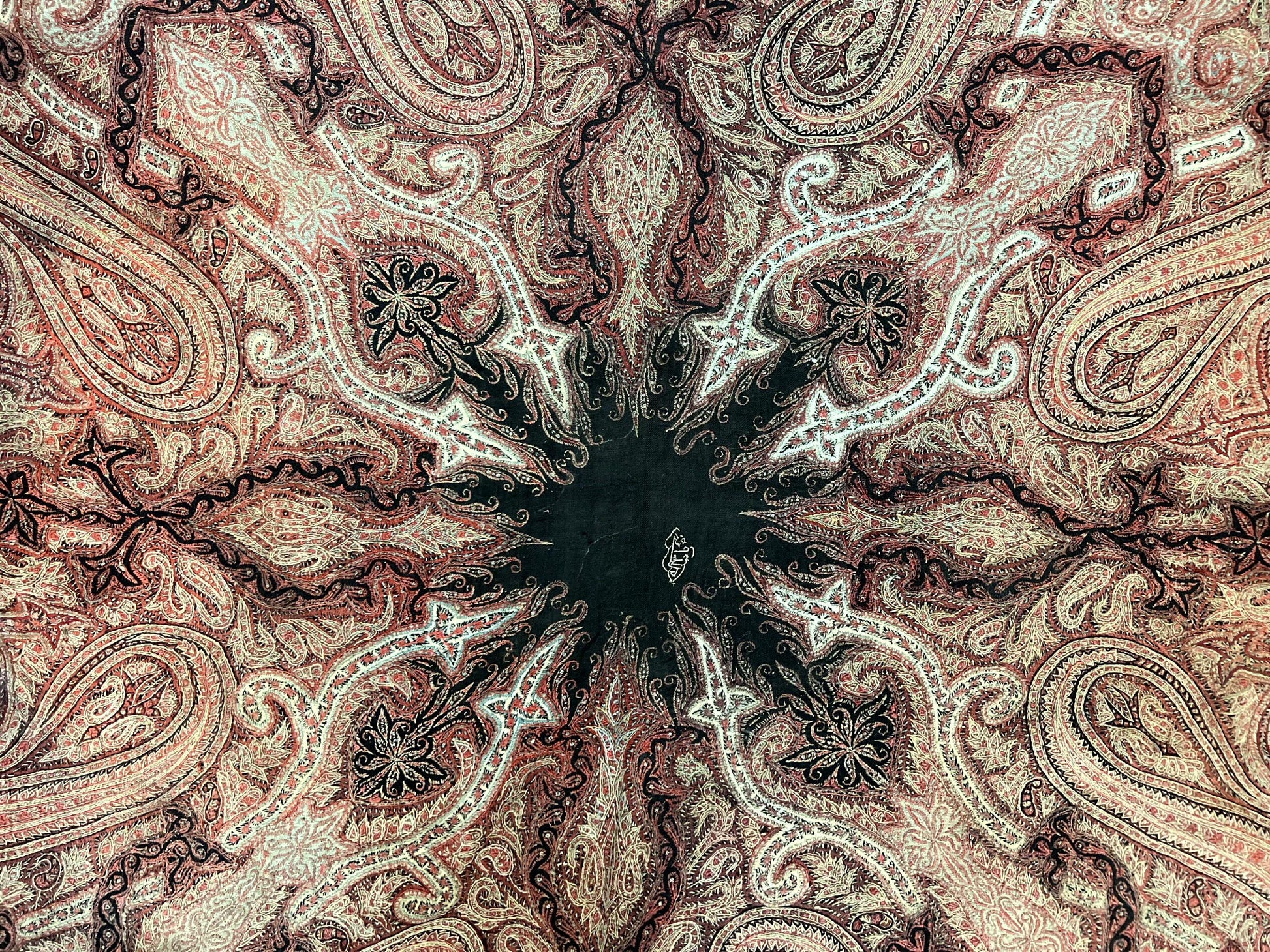 Antique Kashmiri Shawl Handwoven Wool Needlework Signed By Masterweaver Rare