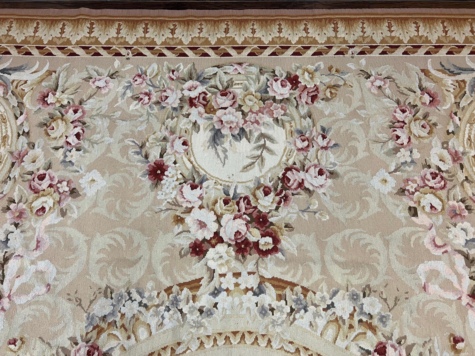 Aubusson Rug 9x12 Savonnerie Wool Floral Handmade European Area Rug
