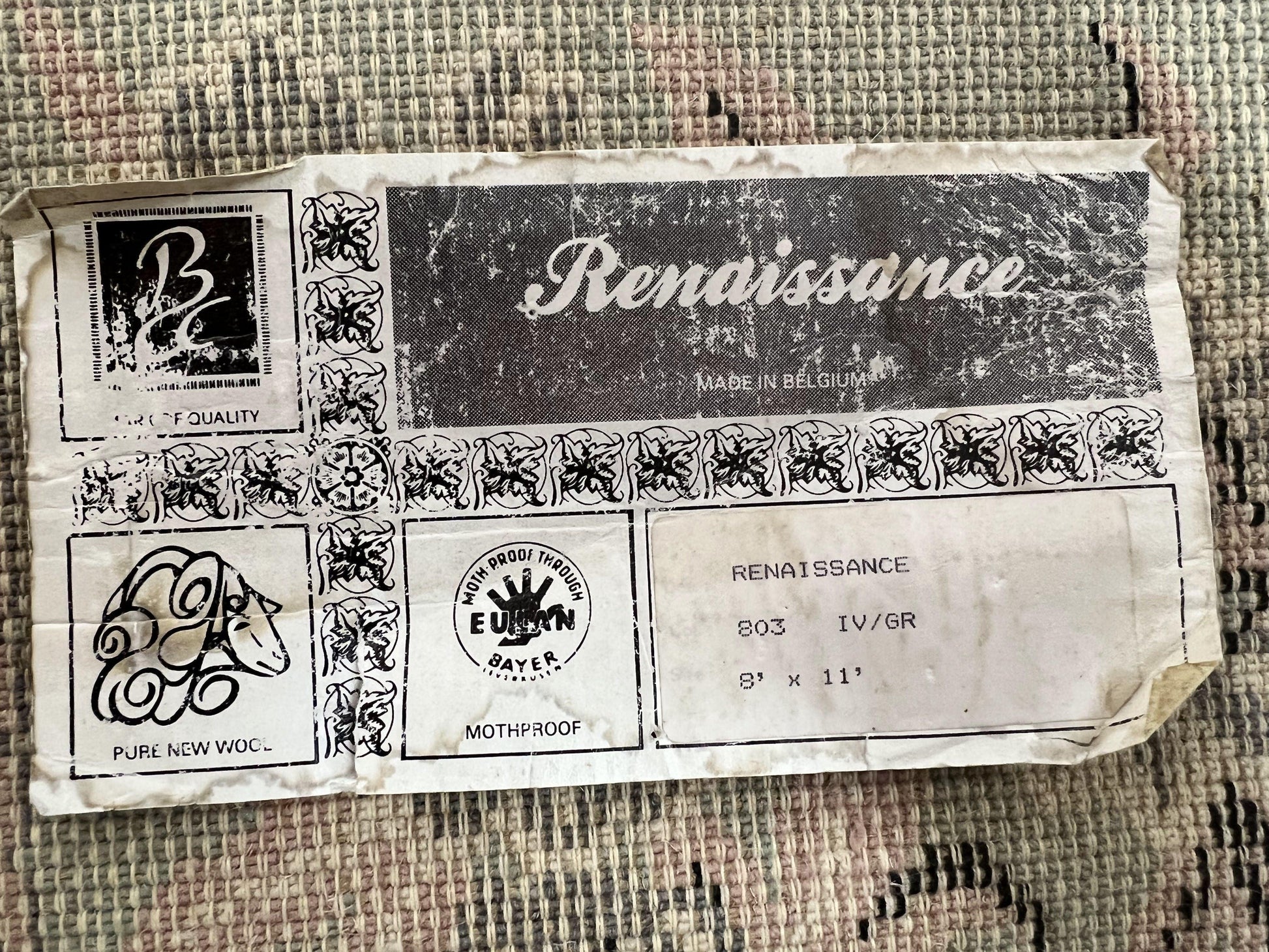 Power Loomed Wool Rug 8x11 Ivory Green Floral Belgium Crafted
