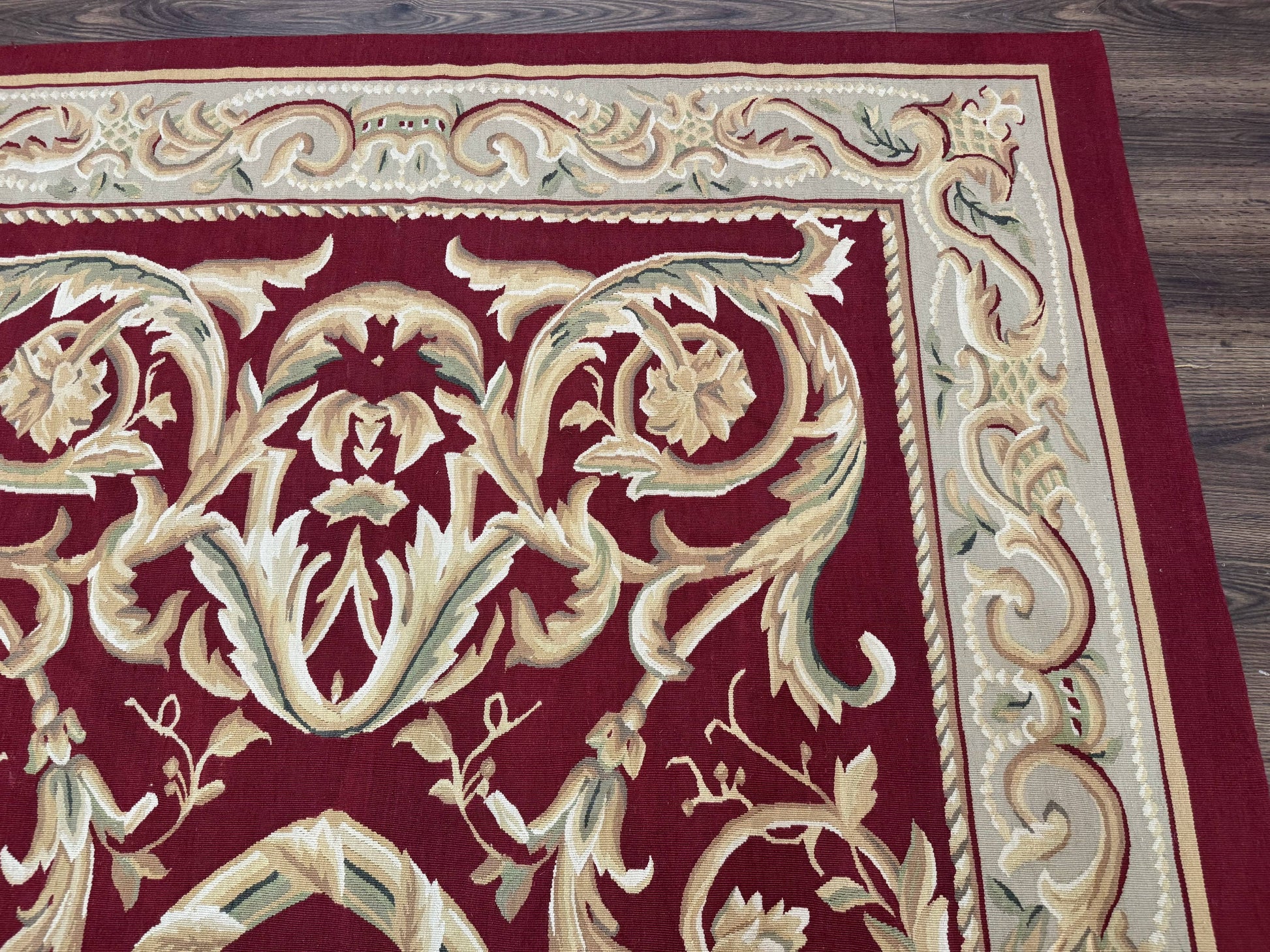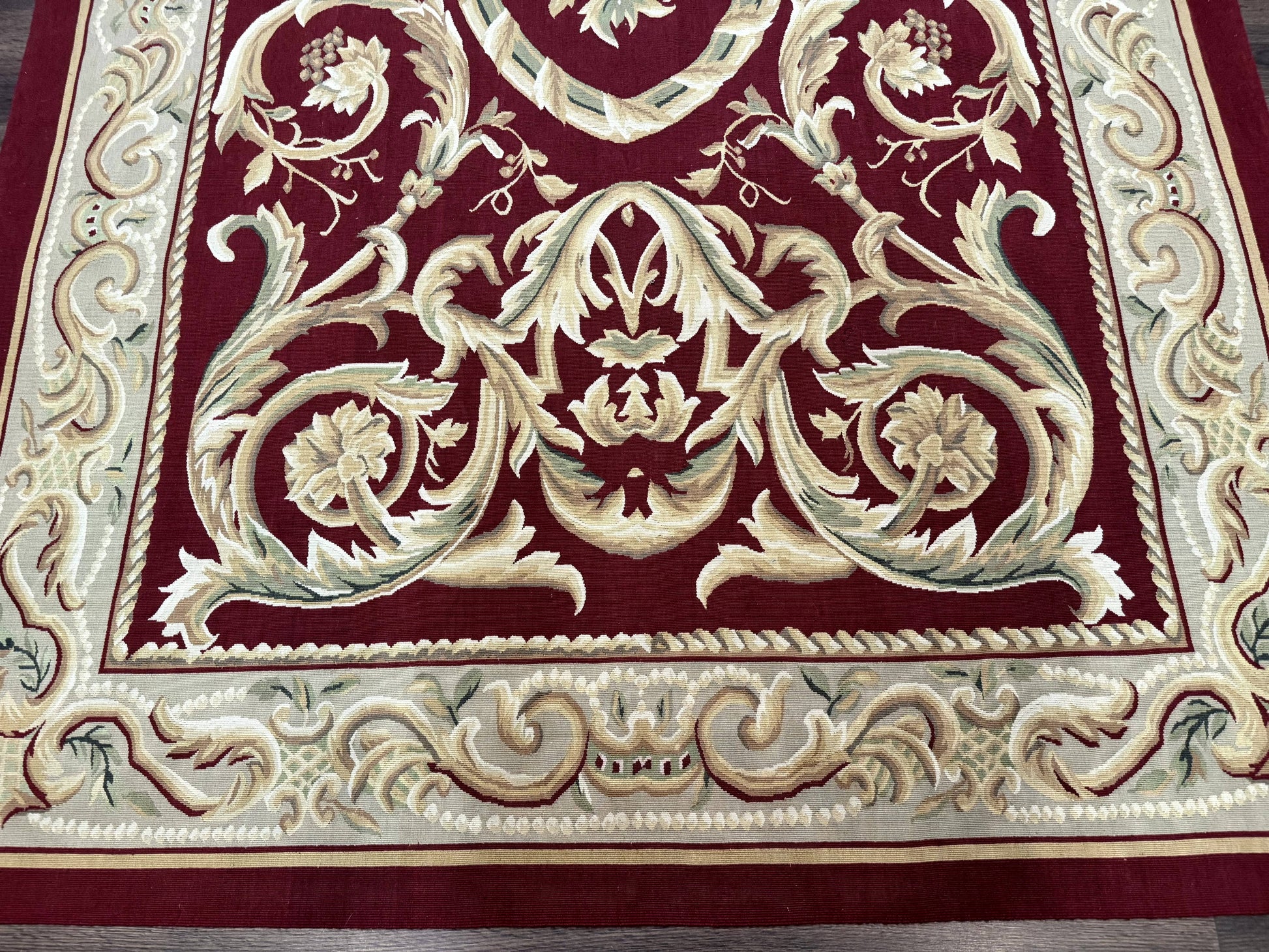 Burgundy Aubusson Wool Rug 6x9 Hand Knotted Vintage Carpet