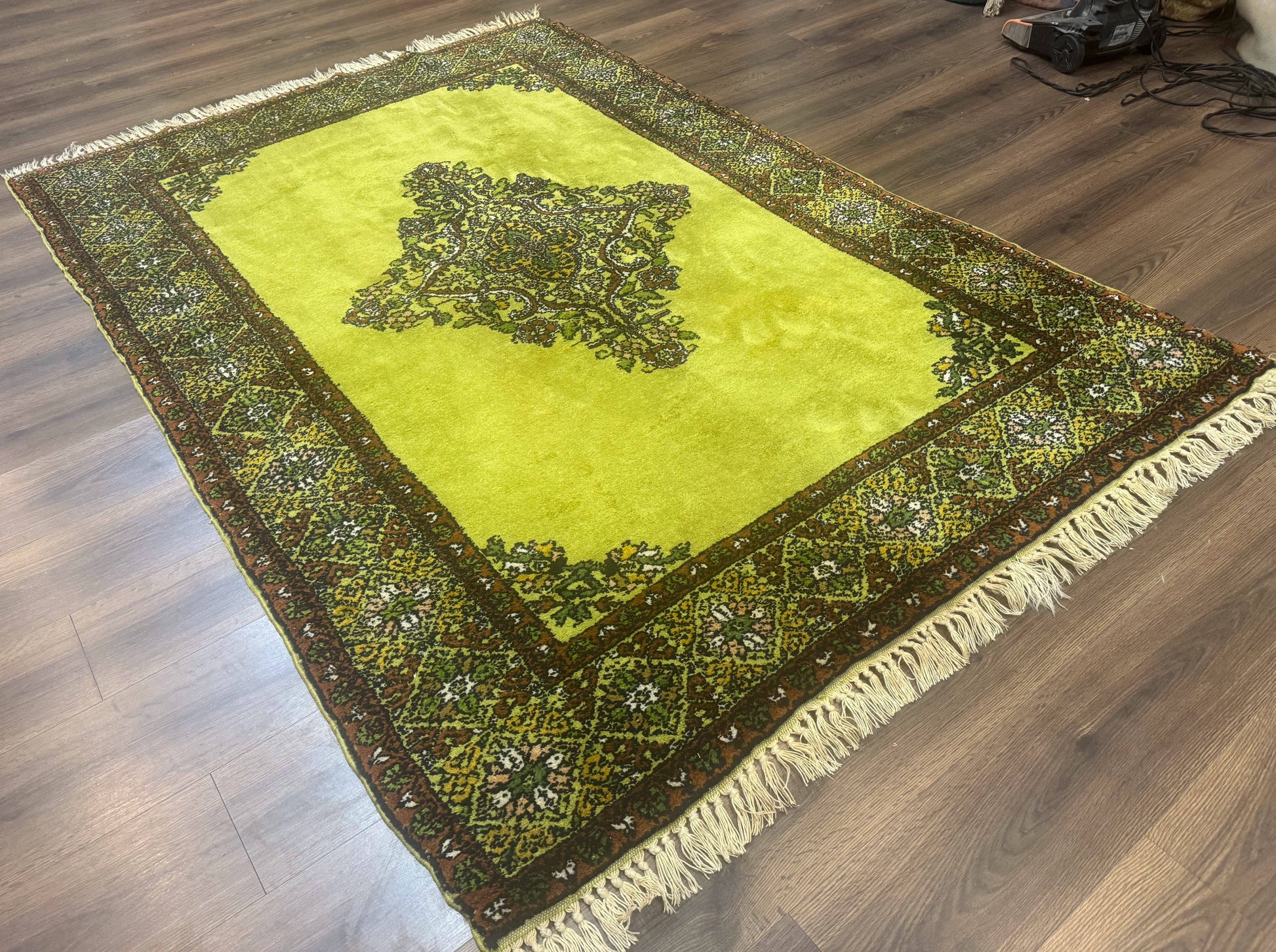 Moroccan Rug 6x8 Vintage Lime Green Wool Carpet Hand Knotted
