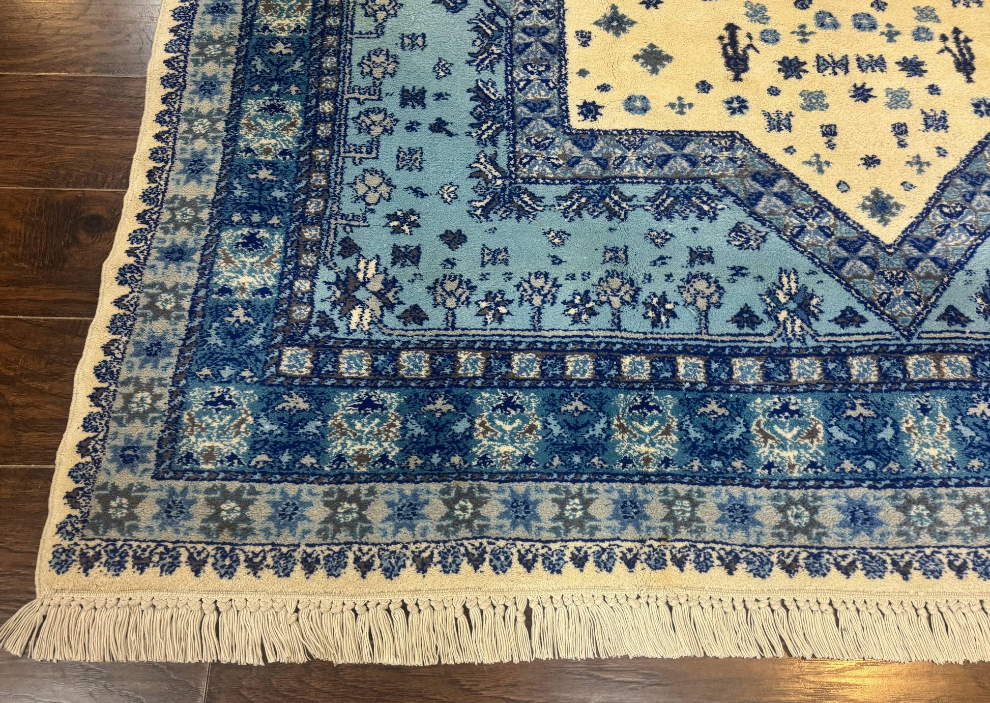 Moroccan Rug 7x10 Geometric Medallion Blue Ivory Hand Knotted Wool Area Rug