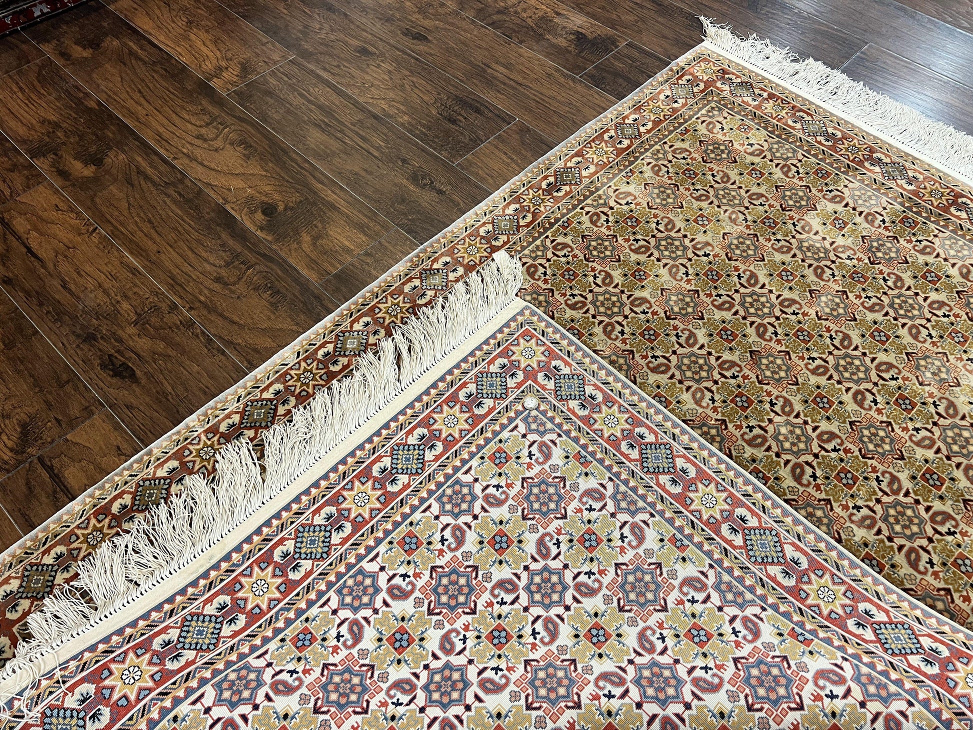 Turkish Kayseri Silk Rug 4x6 Hand Knotted Handmade Vintage Allover Pattern Cream
