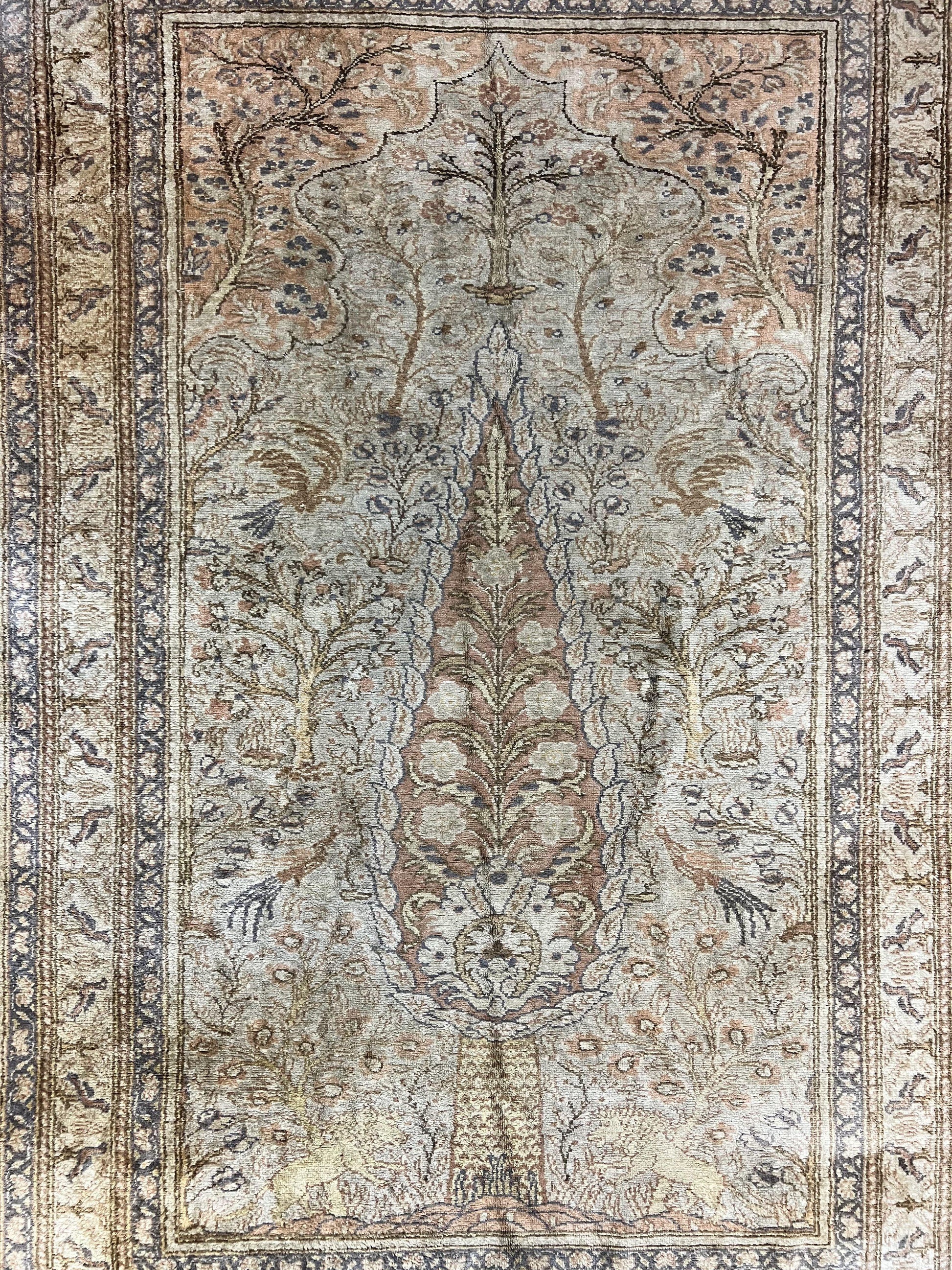 Turkish Kayseri Silk Rug 4x6 Tree of Life Handmade Hand Knotted Vintage