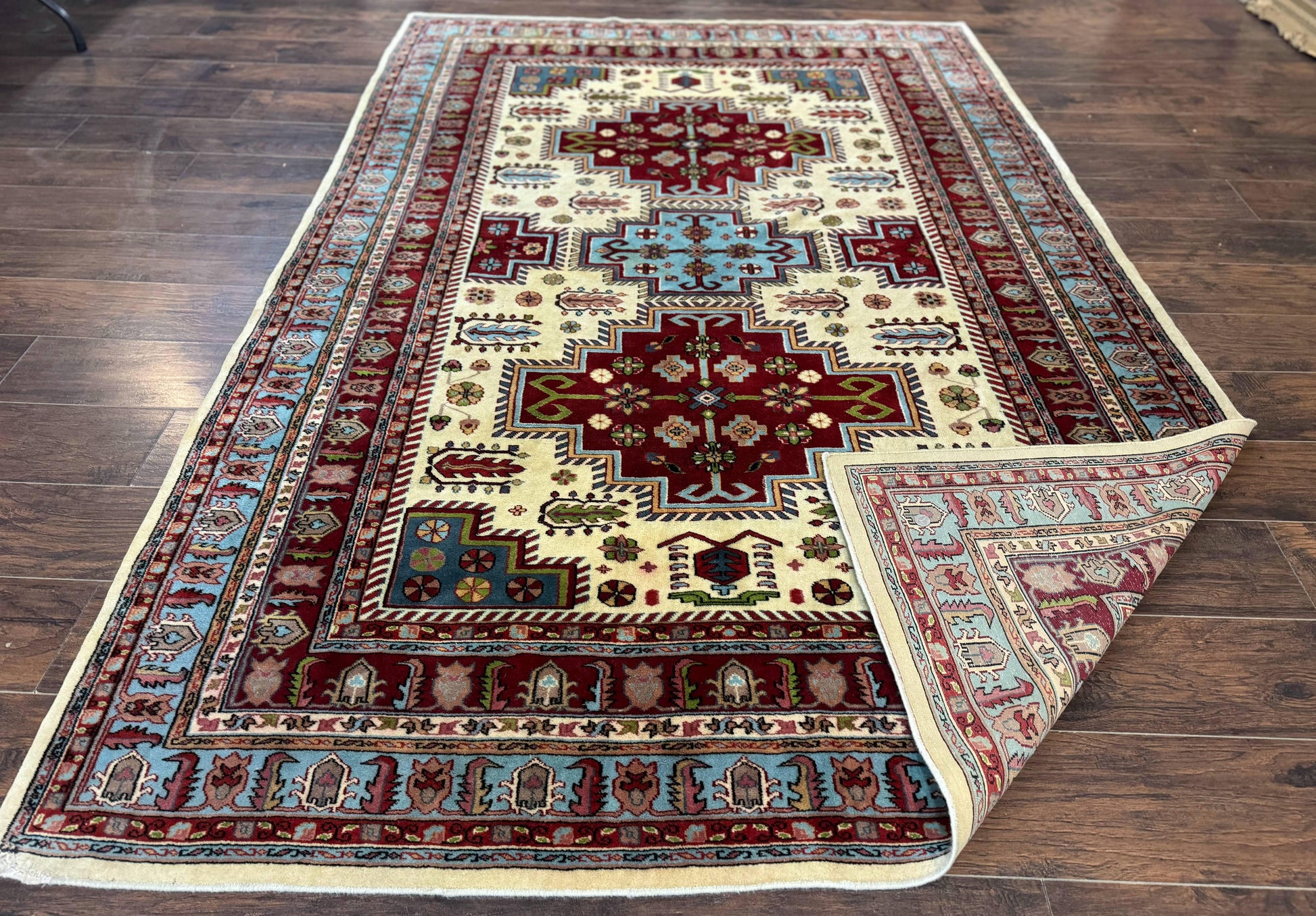Turkish Kazak Rug 6x9 Hand Knotted Wool Geometric Medallions