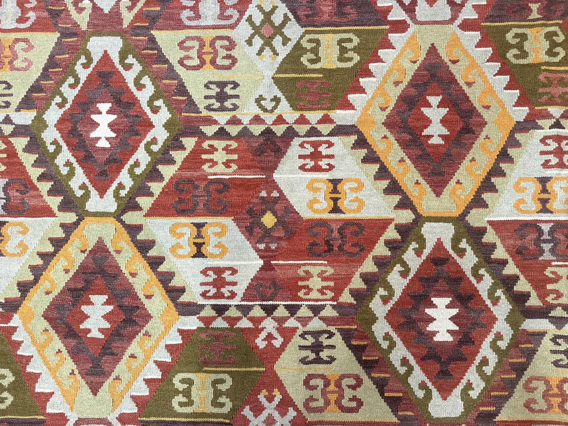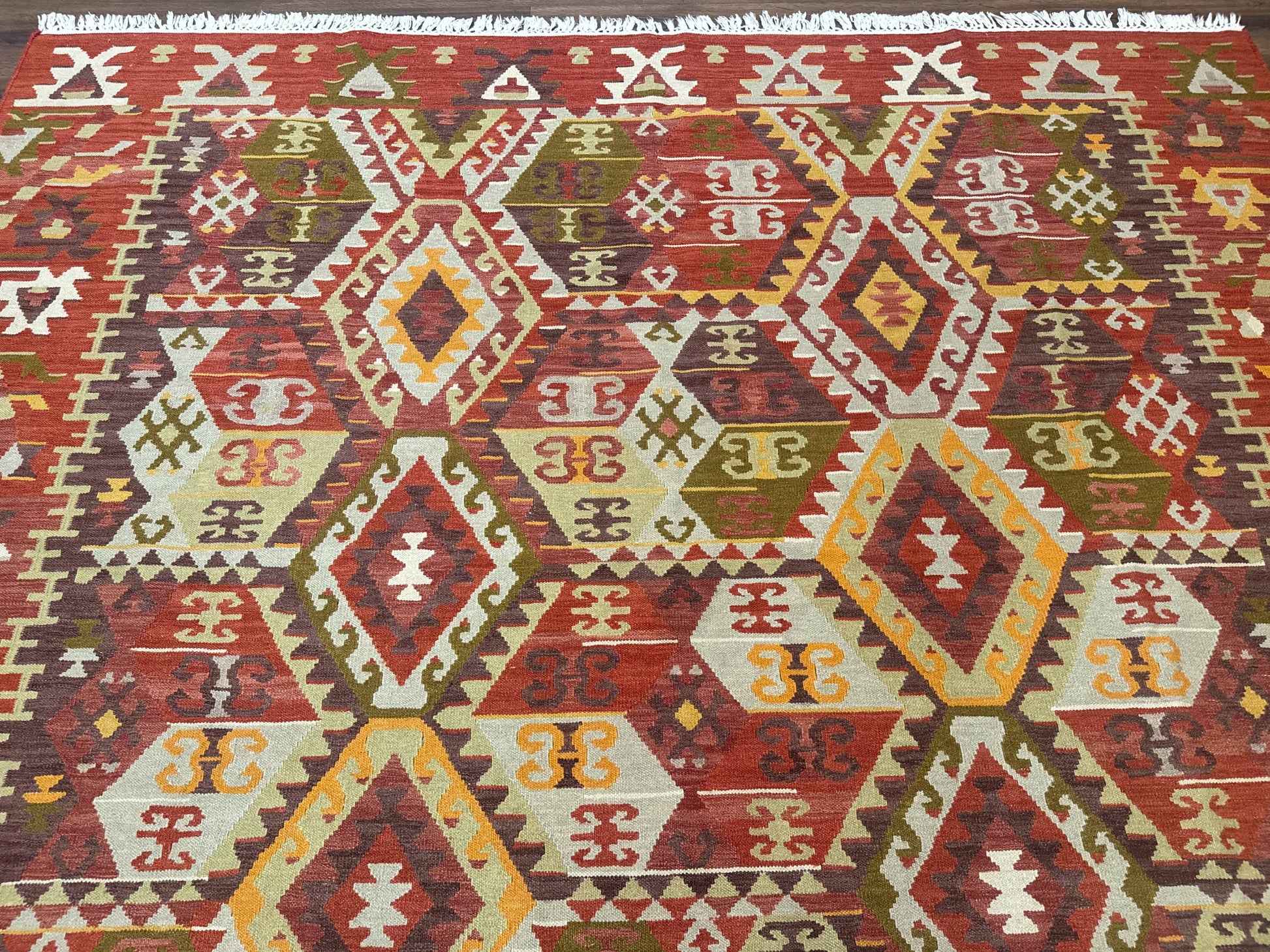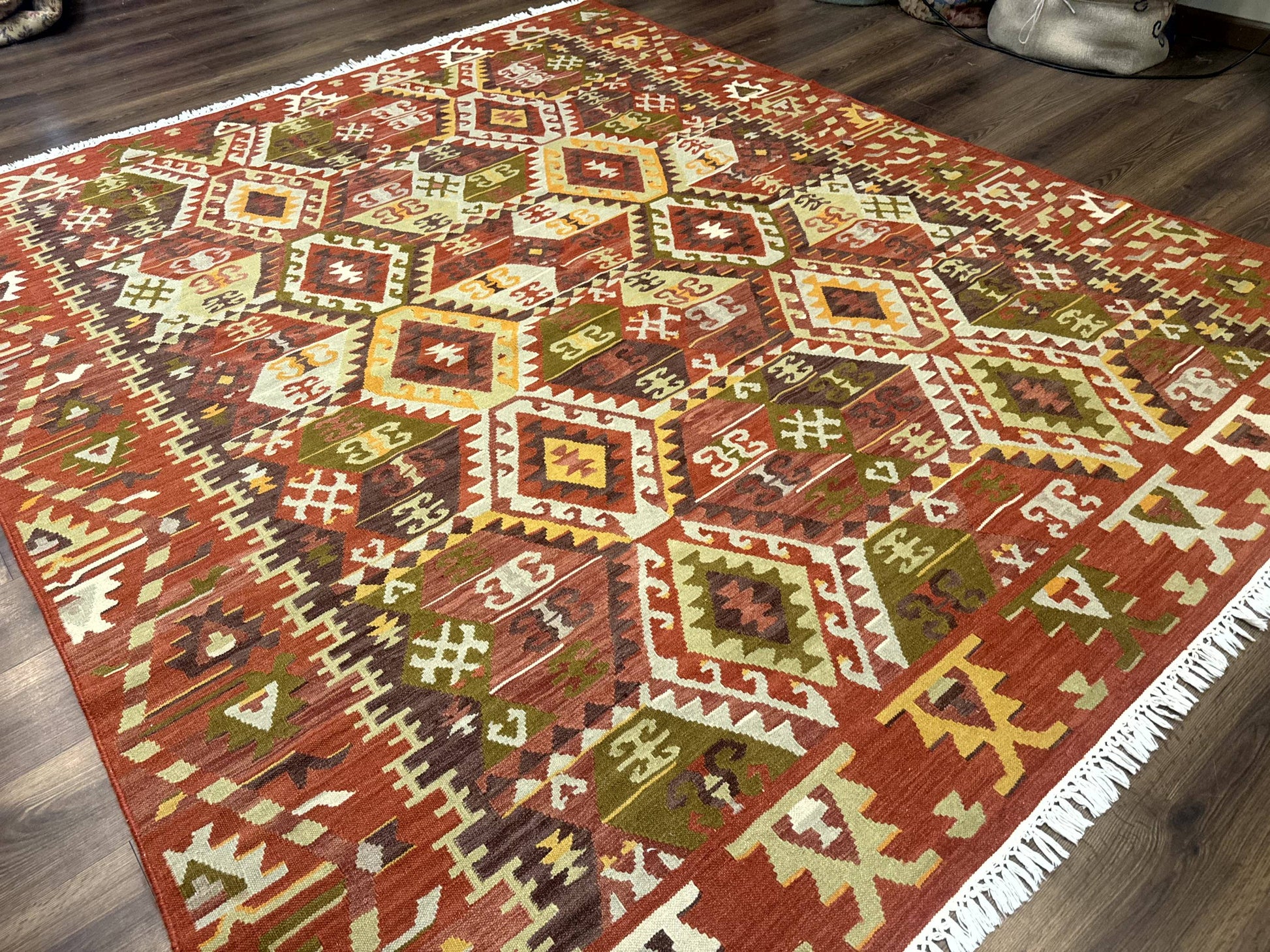 Turkish Kilim Rug 8x10 Geometric Design Handwoven Wool Carpet