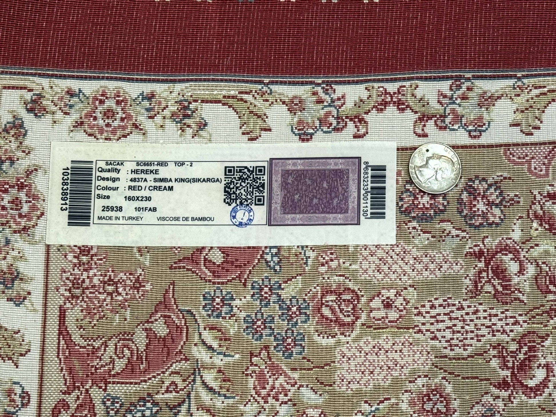 This Turkish Silk Hunting Scene Rug adds a bold, contemporary touch to living rooms, bedrooms, or offices. Woven in Turkey from bamboo silk, it offers a soft, cool feel and a striking red-and-ivory motif that suits modern spaces.
