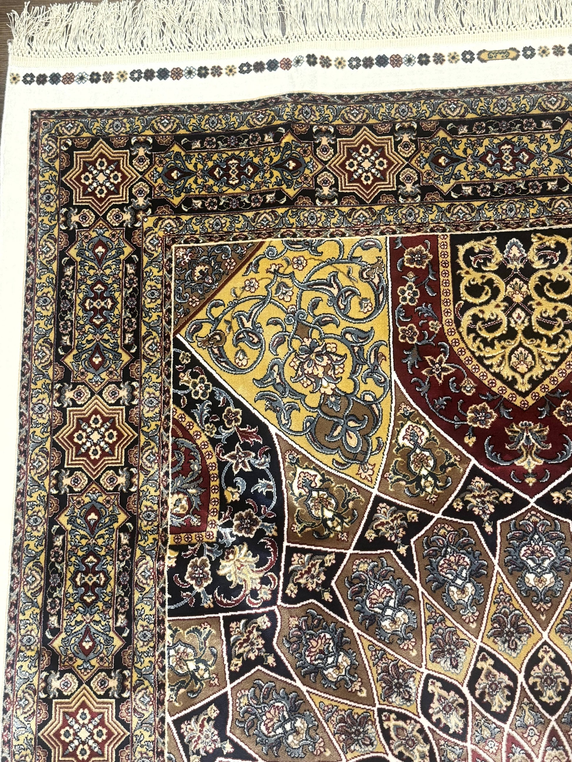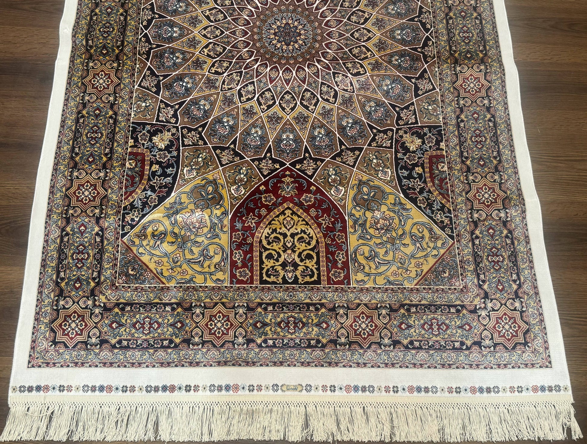 Turkish Silk Rug 4x6 Dome Design Bamboo Silk Memluk Carpet