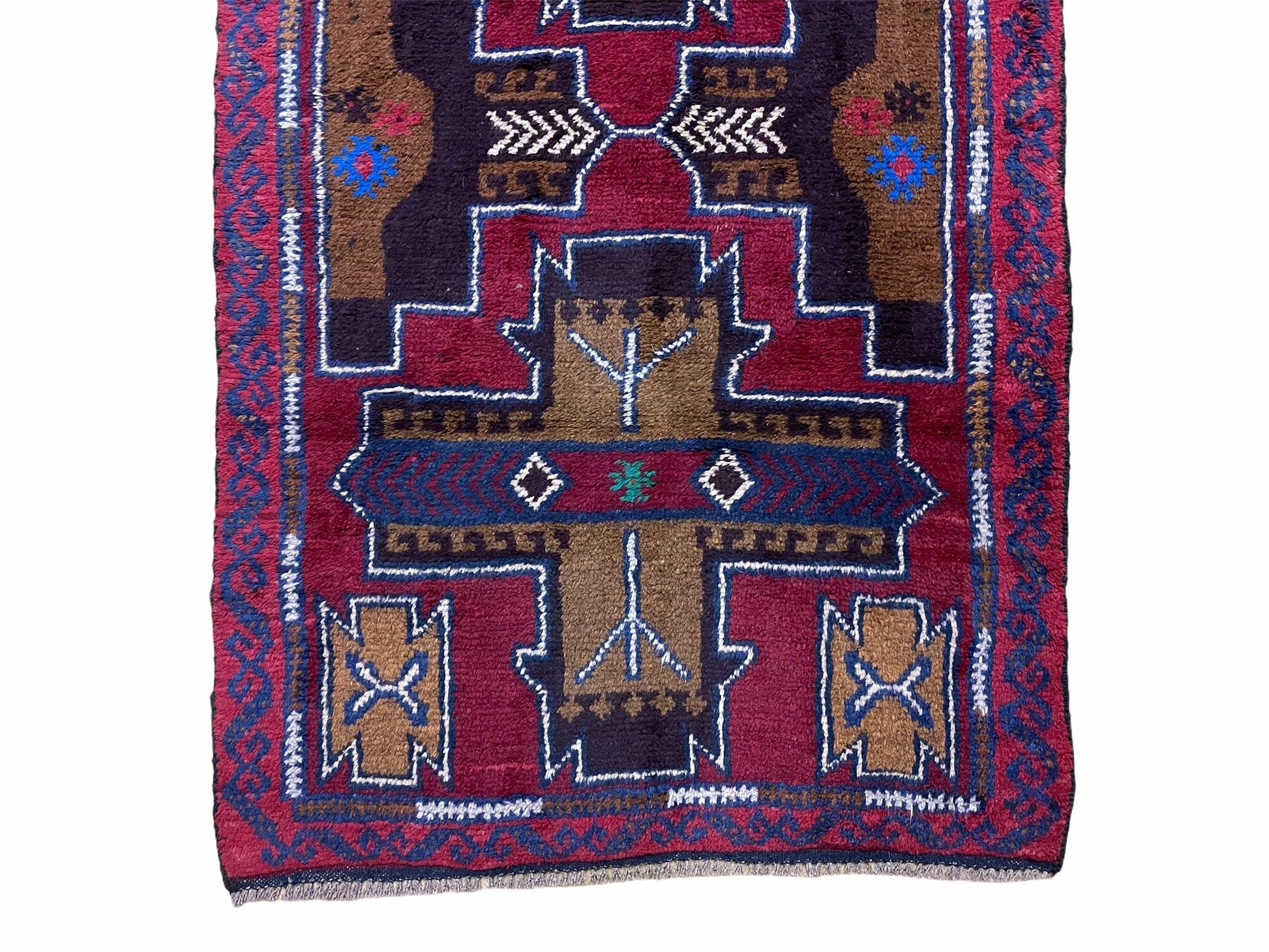 2' 10" X 4' 9" Vintage Handmade Tribal Wool Rug Balouchi Rug Afghan Rug Red Blue