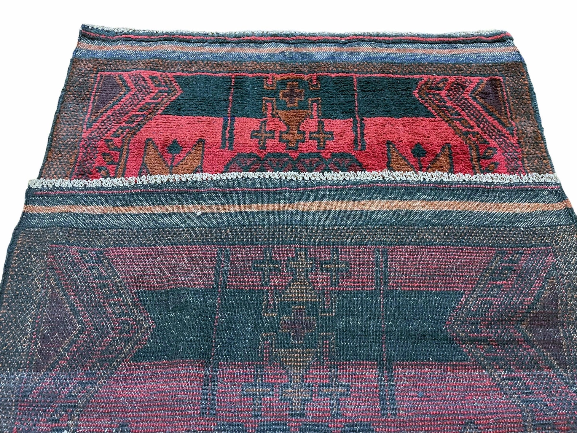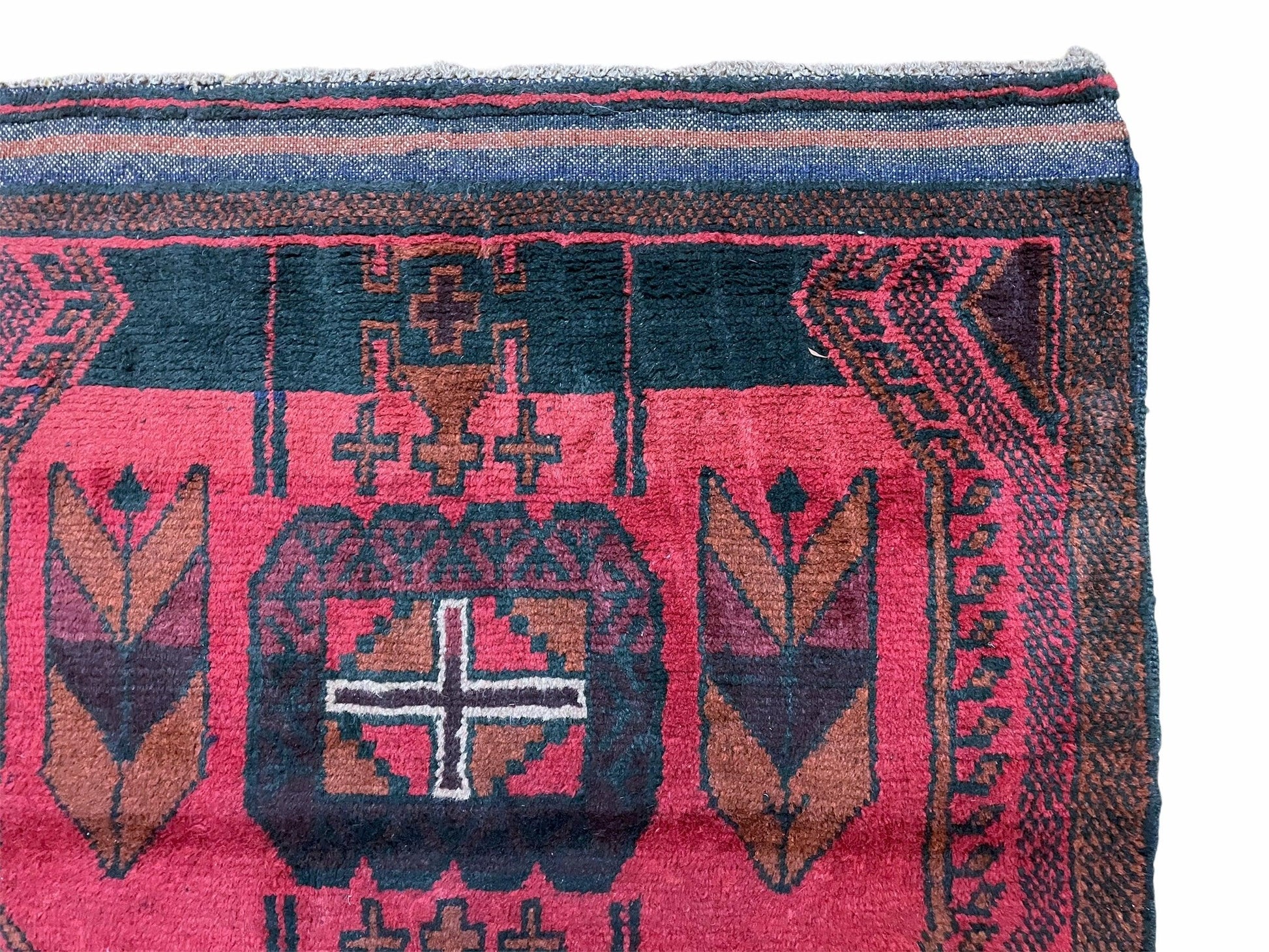 Balouchi Rug Vintage Hand Knotted Afghan Wool Tribal Area Rug Red Black