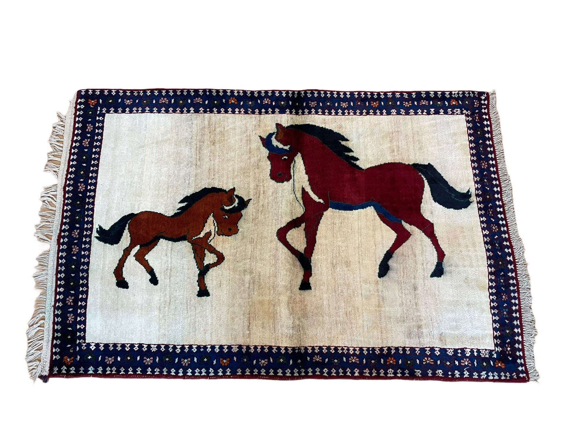 Handmade Wool Pictorial Horse Rug Hand Knotted 3.5 By 5 Brown