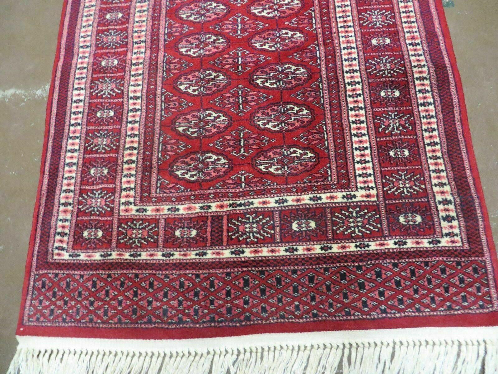 Turkoman Bokhara Vintage Rug 3x5 ft Hand Knotted Fine Wool Yamud Design Classic