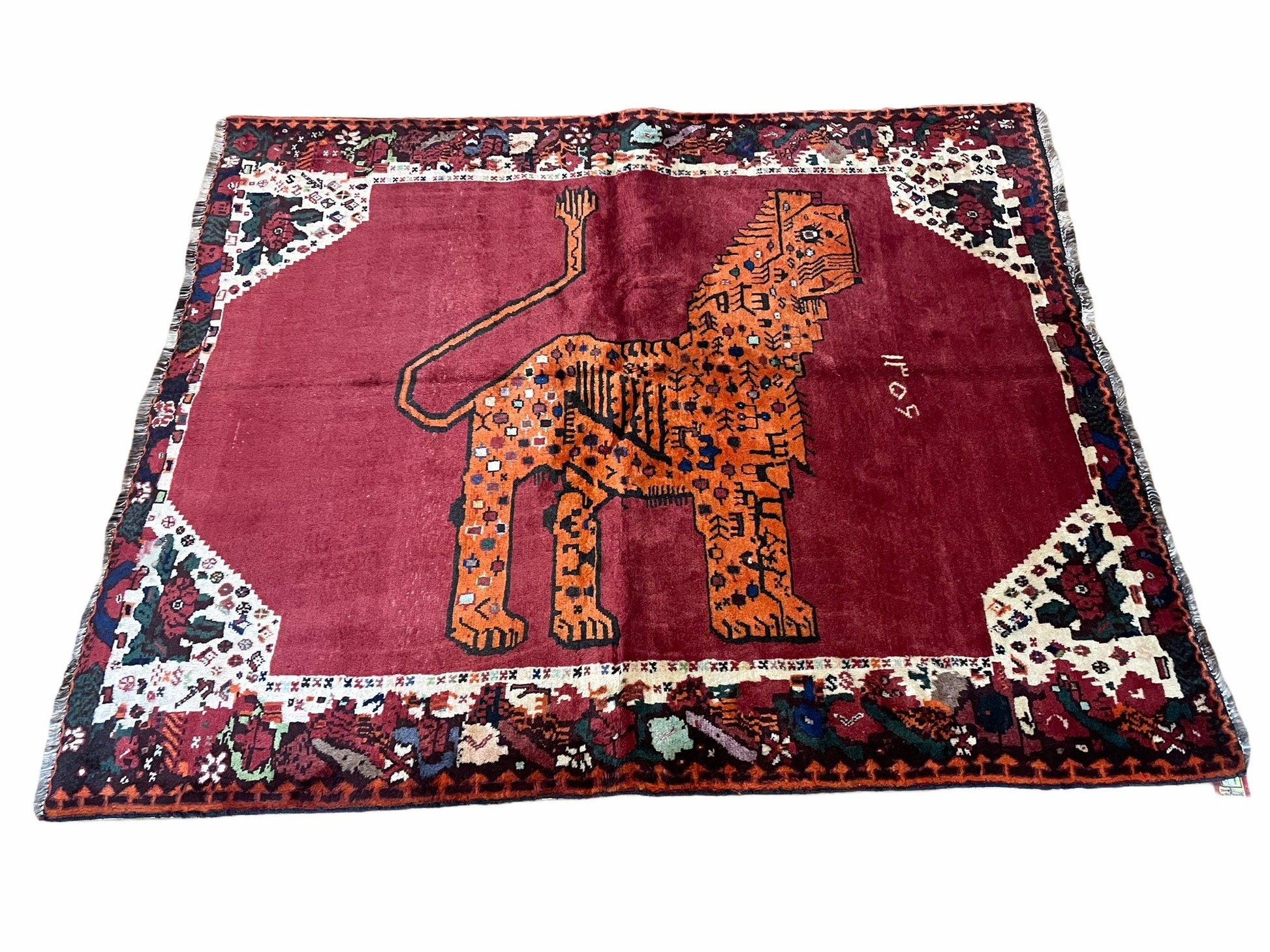| Condition/Notes | Great condition Antique wool rug with design of a Lion. Made out of fine Zagros Mountain Wool. All natural and organic dyes. |