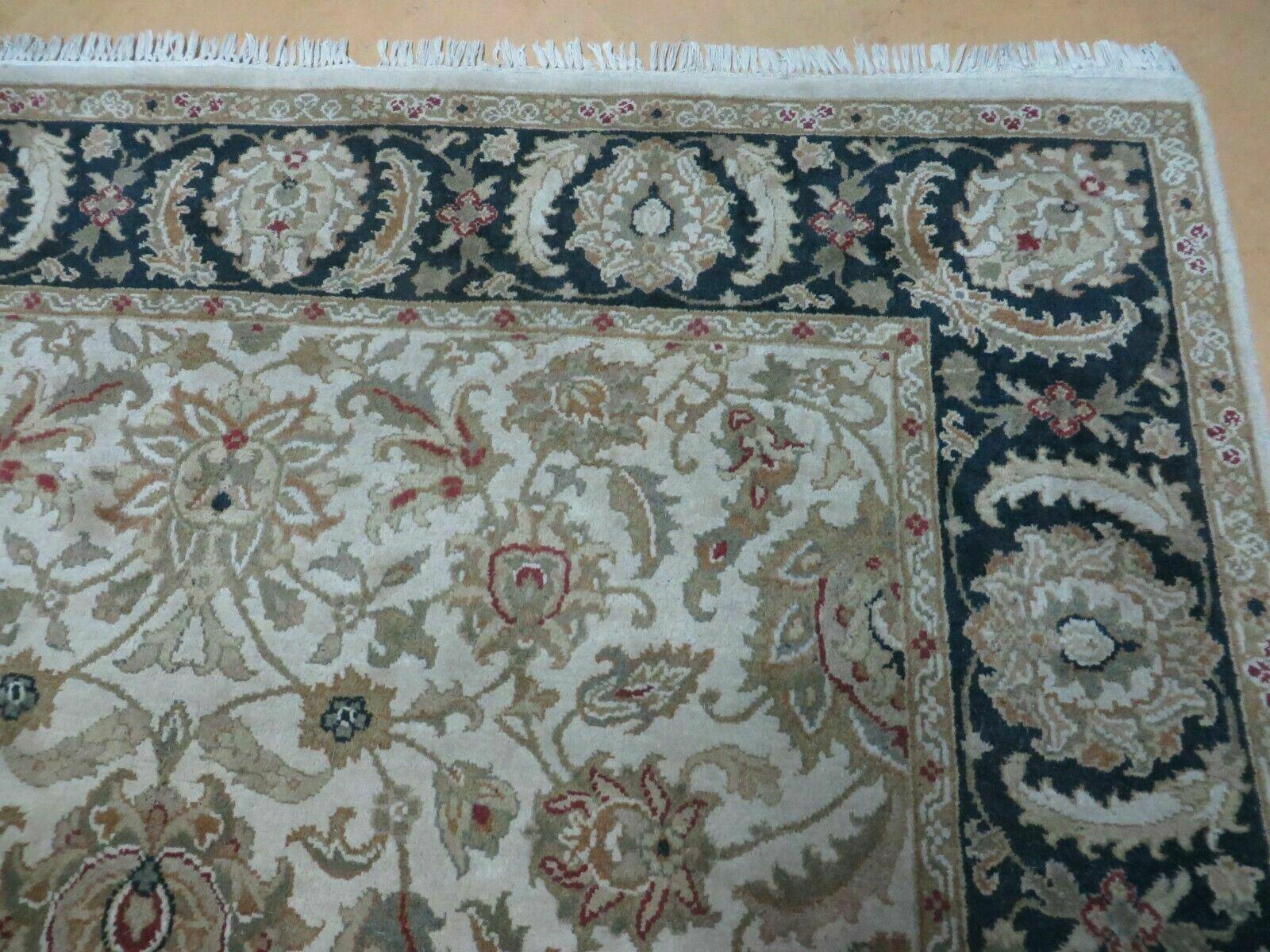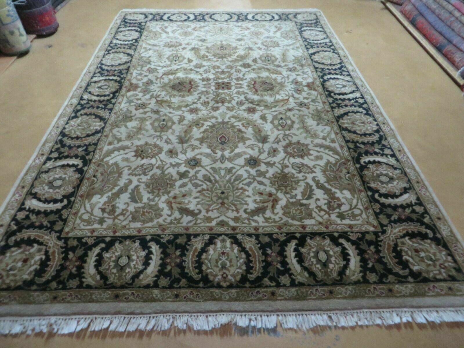 Vintage Handmade Rug Jaipur India Floral Oriental Design Tea Wash 6x9 Feet Hand Tufted