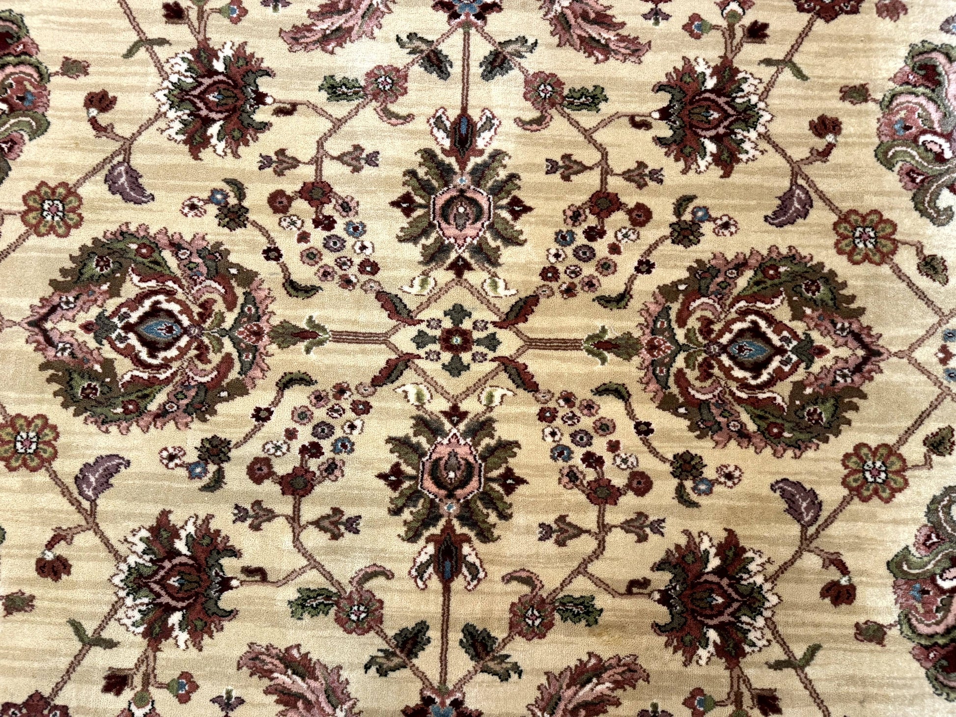 Enjoy a durable, fade-resistant wool rug that stands up to everyday living while adding warm, neutral tones to your space. The authentic Karastan label and vintage Agra design offer collectible appeal and proven craftsmanship, making it a reliable centerpiece for living rooms, dining areas, or bedrooms. With a recent professional cleaning and a pristine pile, this rug is ready to enhance your décor and provide timeless elegance for years to come.