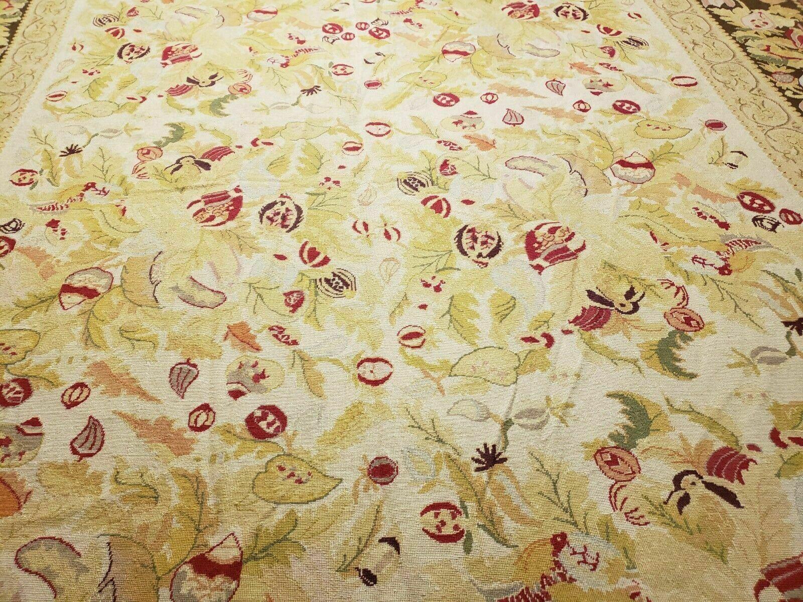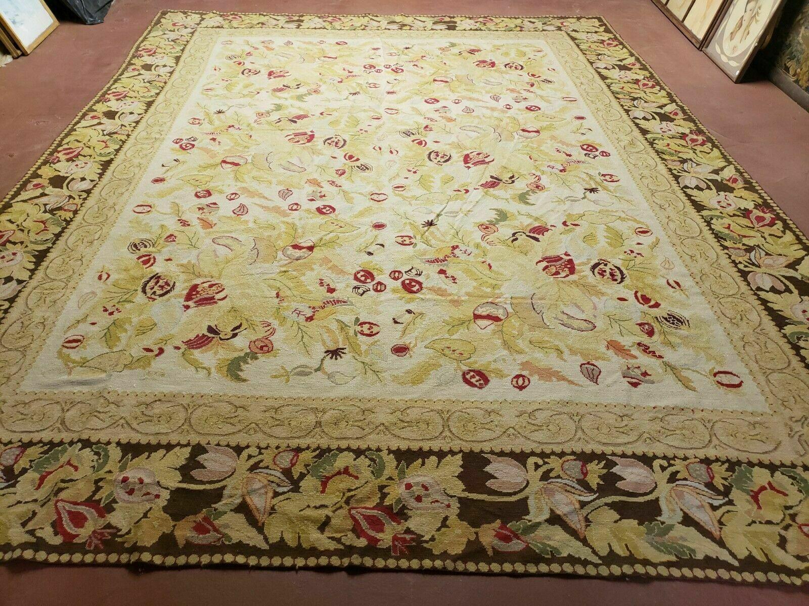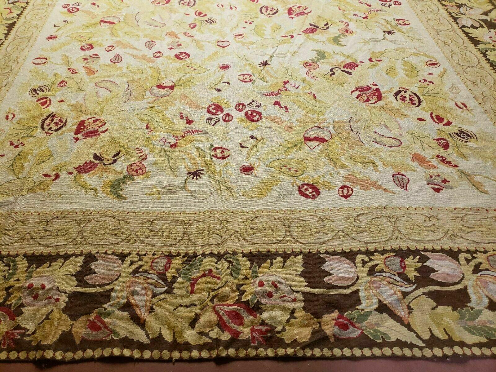 Handmade Chinese Needlepoint Wool Rug 9x11 Floral Rose Garden Chic Decor