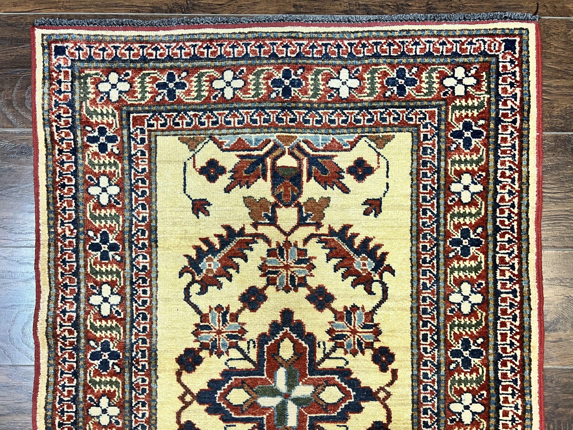 Afghan Heriz Runner Rug 2.9 x 12, Vintage Hand Knotted Persian Carpet for Hallway, 12ft Runner, Wool, Cream