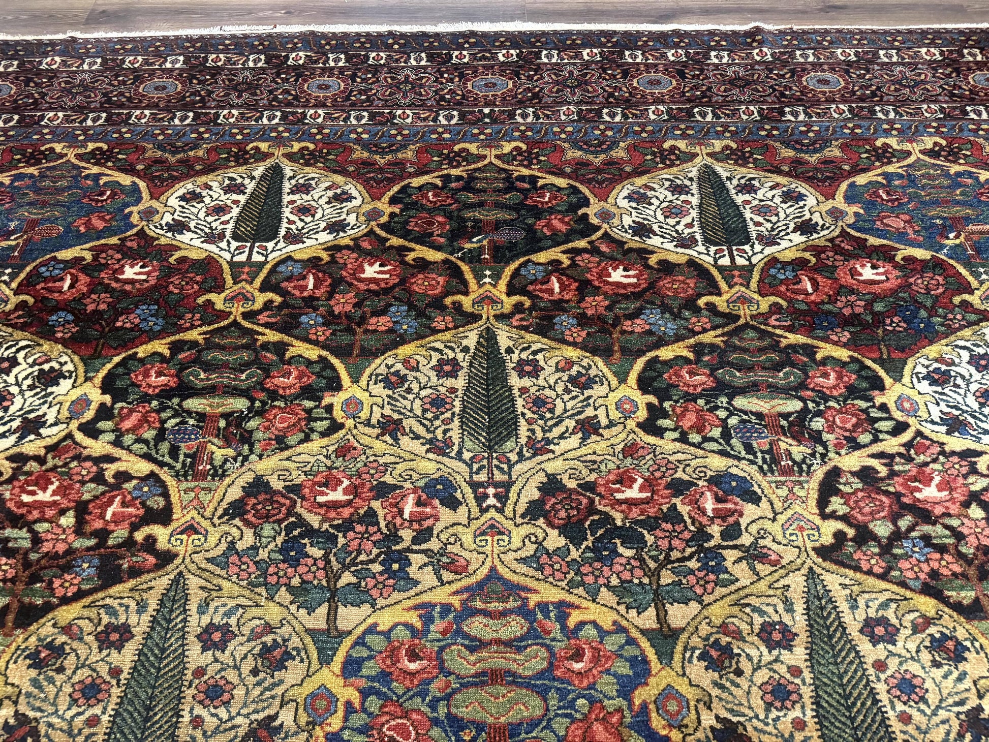 Persian Bakhtiari Rug Antique 12x19 Hand Knotted Wool Panel Design Peacocks Multicolor