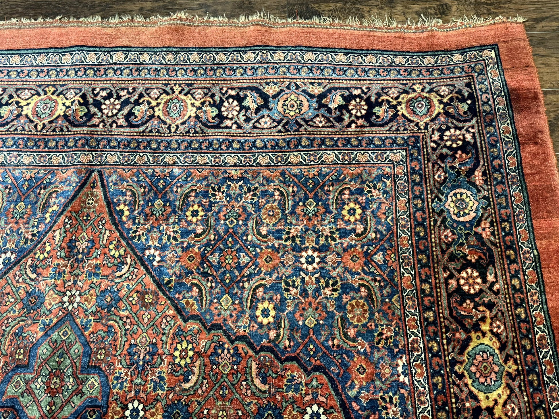 - Pattern: Intricate Herati motifs centered on a crisp diamond medallion, framed by a traditional floral border.
