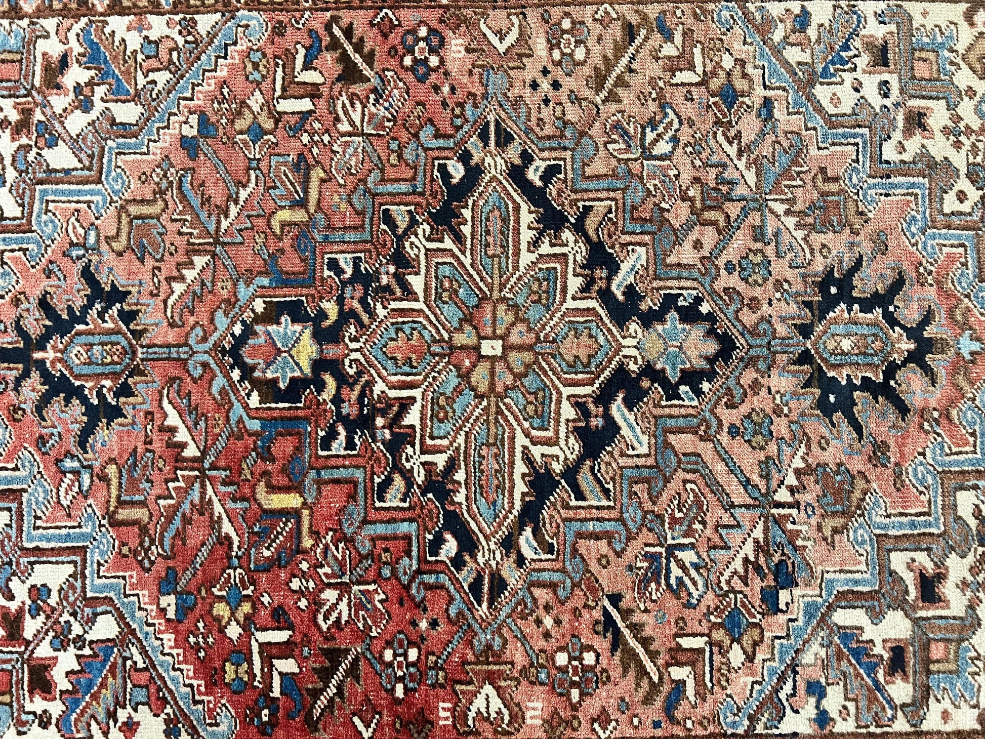 Experience durable, low-maintenance beauty with a wool hand-knotted rug that ages gracefully and maintains its character. The antique Heriz design provides a timeless focal point that complements a range of décors, from traditional to contemporary. At 6x8 feet, it offers generous coverage for living rooms, dining areas, or bedrooms without overwhelming the space. Recently cleaned and free of stains or odors, this rug is ready to elevate your space and enhance your everyday moments.