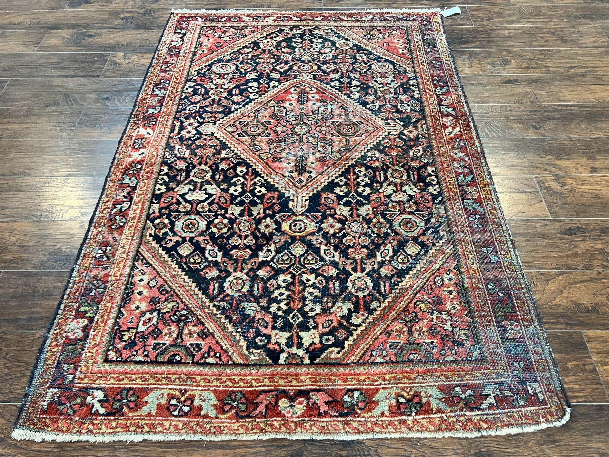 Bring a piece of timeless Persian artistry into your home with this Antique Mahal Rug. Hand-knotted from wool in the 1930s, this 4'4" x 6'6" tribal geometric carpet adds warmth, texture, and a touch of history to any space.