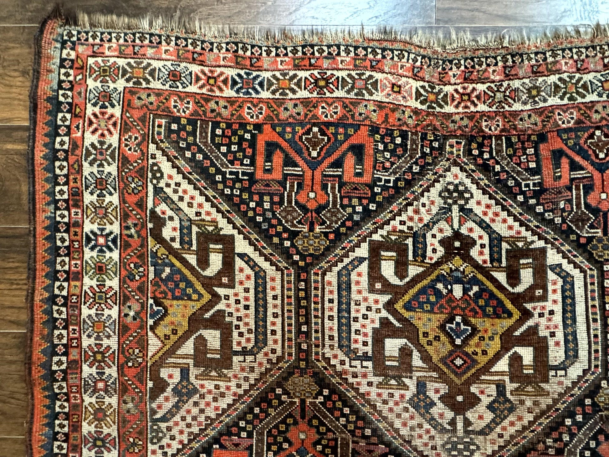 Antique Persian Qashqai Rug 5x8, Persian Tribal Rug, Khamseh Rug