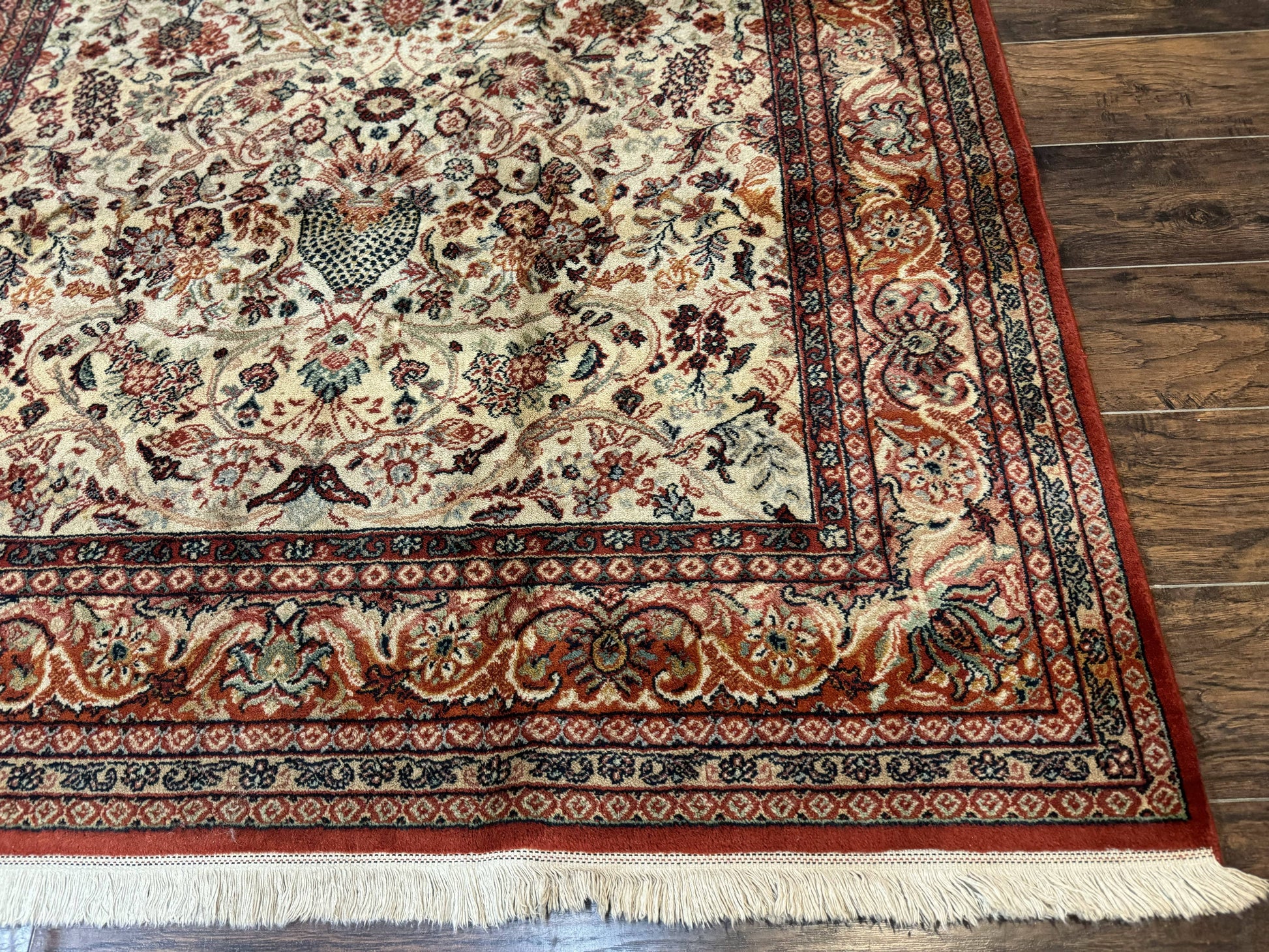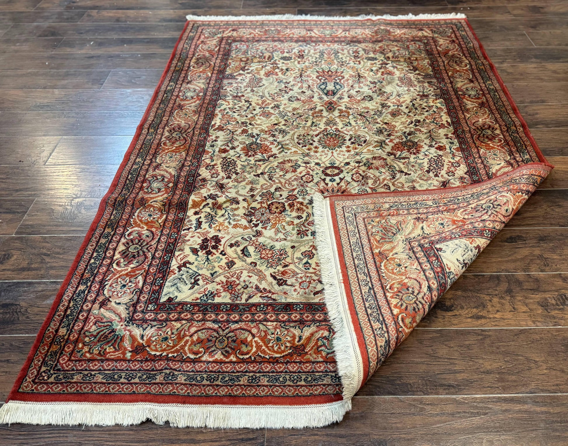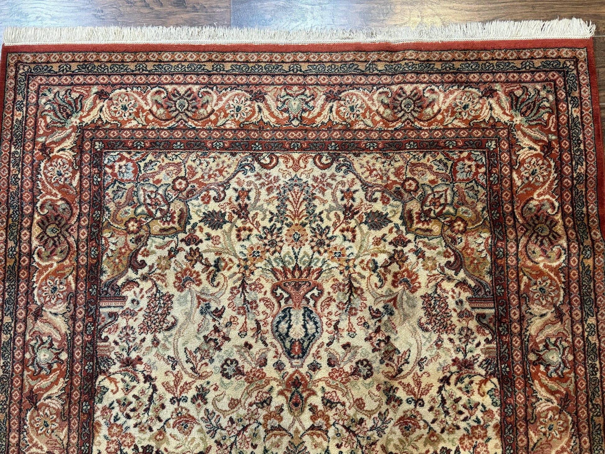 Antique Persian Rug 5x7 Allover Floral With Vases Beige Red Belgian Power Loomed Wool