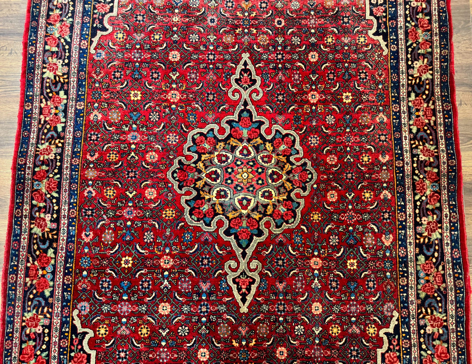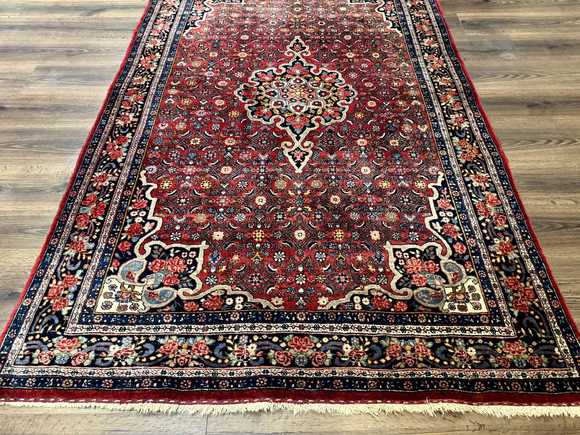Antique Persian Rug 5x7, Red, Fine 260 KPSI, Bidjar Carpet