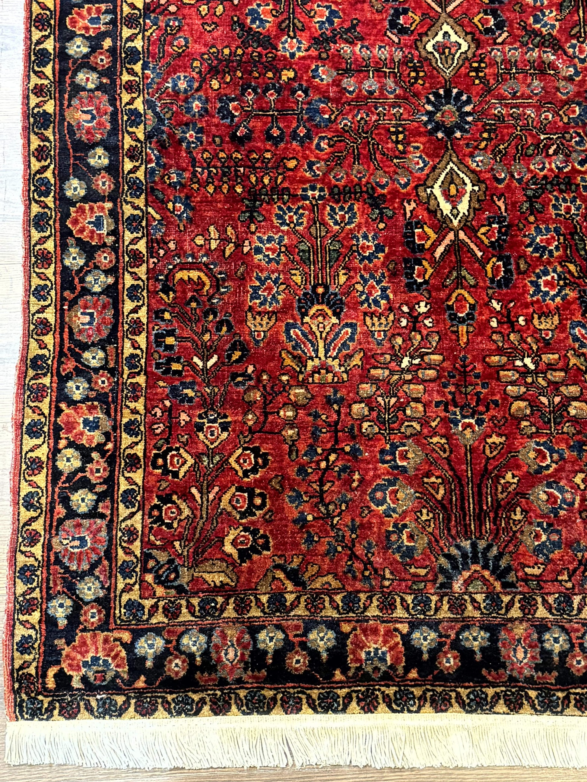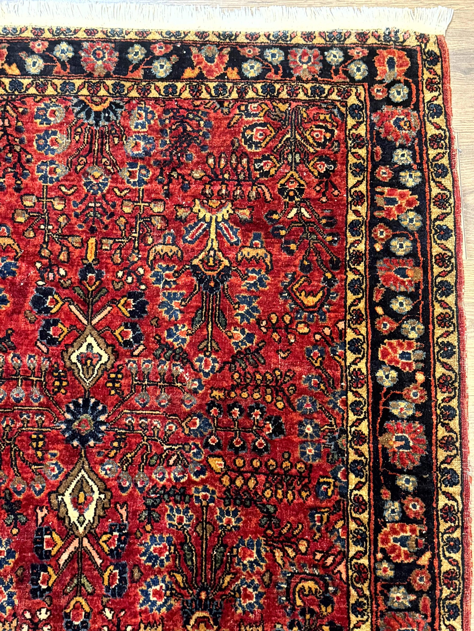 Antique Persian Sarouk Rug 3x4, Red, Floral, 1920s Wool Rug
