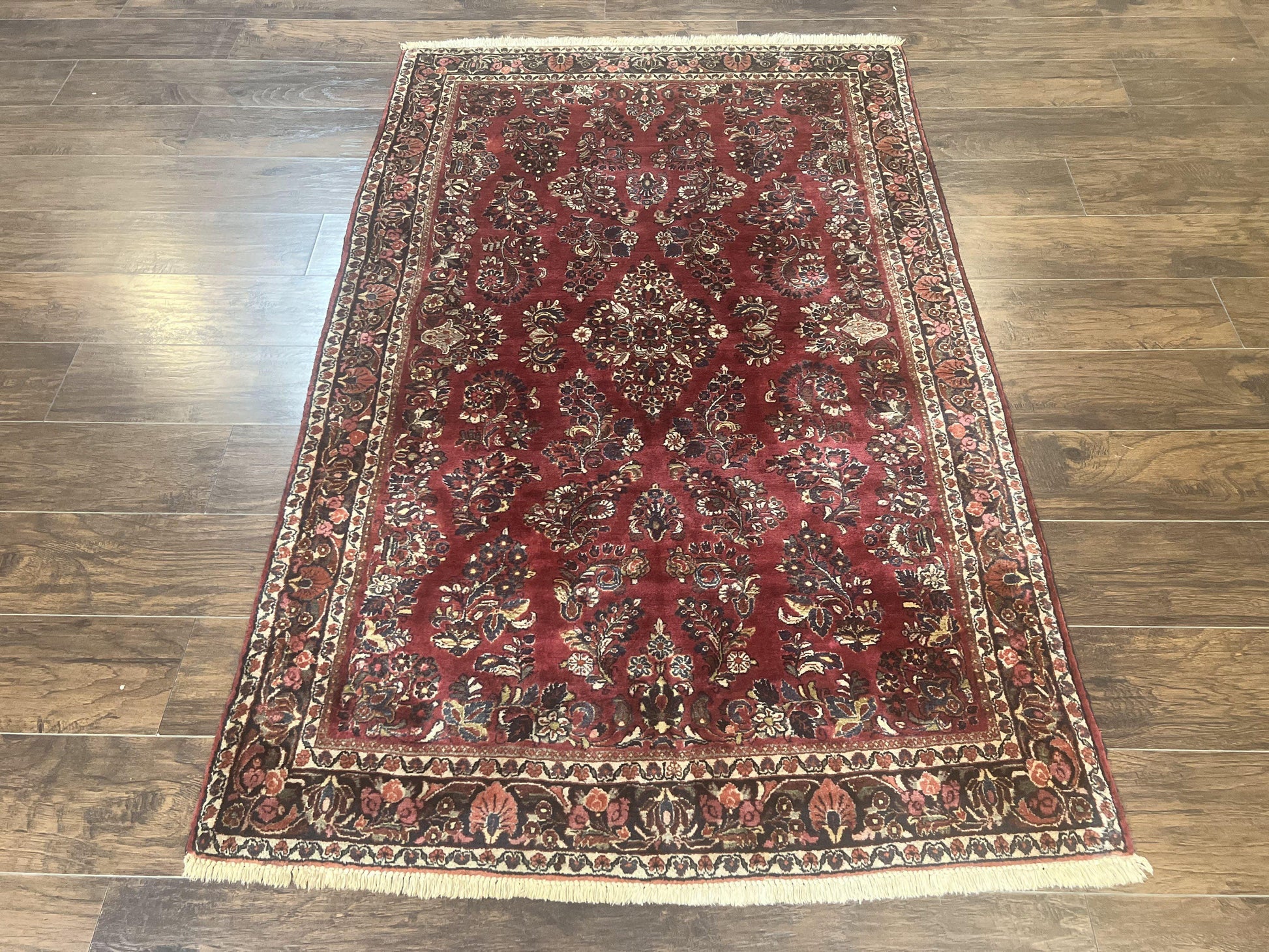 Antique Persian Sarouk Rug 4x7, Hand Knotted Wool Red Persian Carpet, Floral
