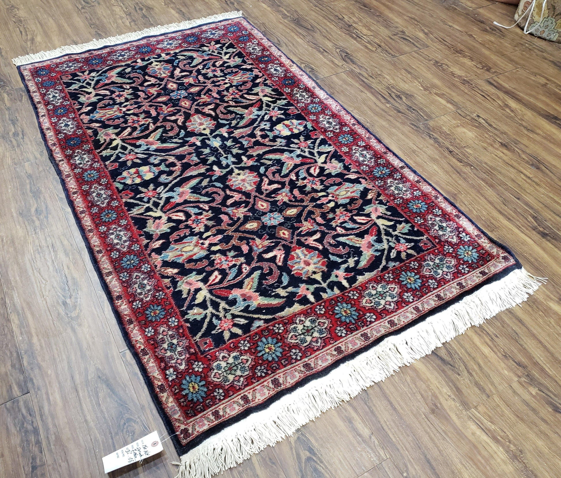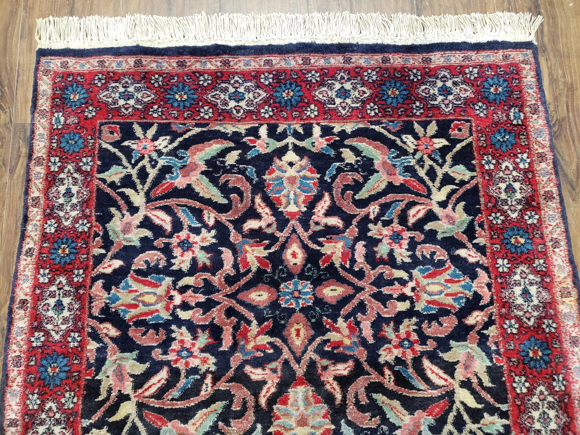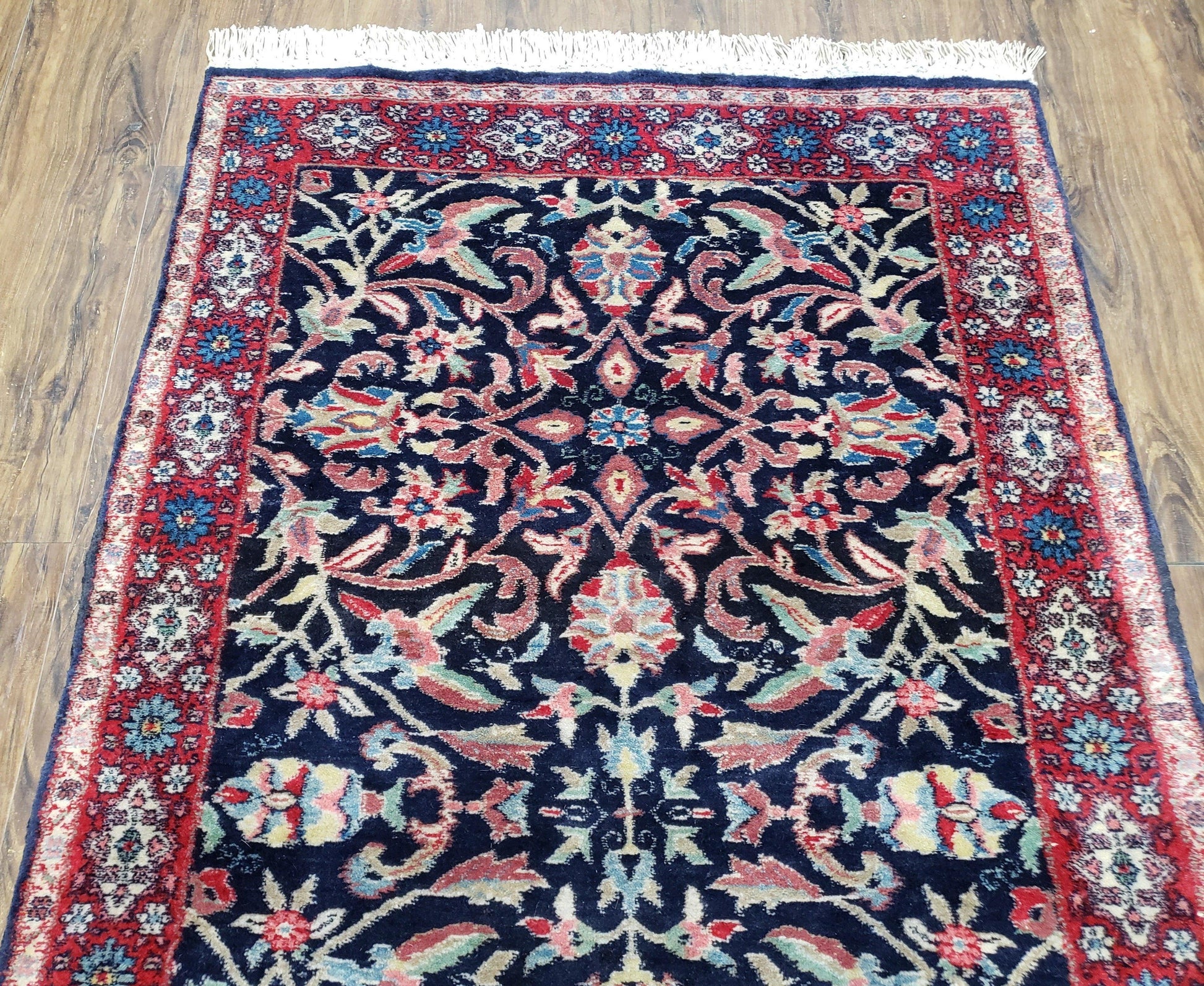 Antique Persian Sarouk, Wool, Hand-Knotted, Blue & Red, 3'1" x 5'3"