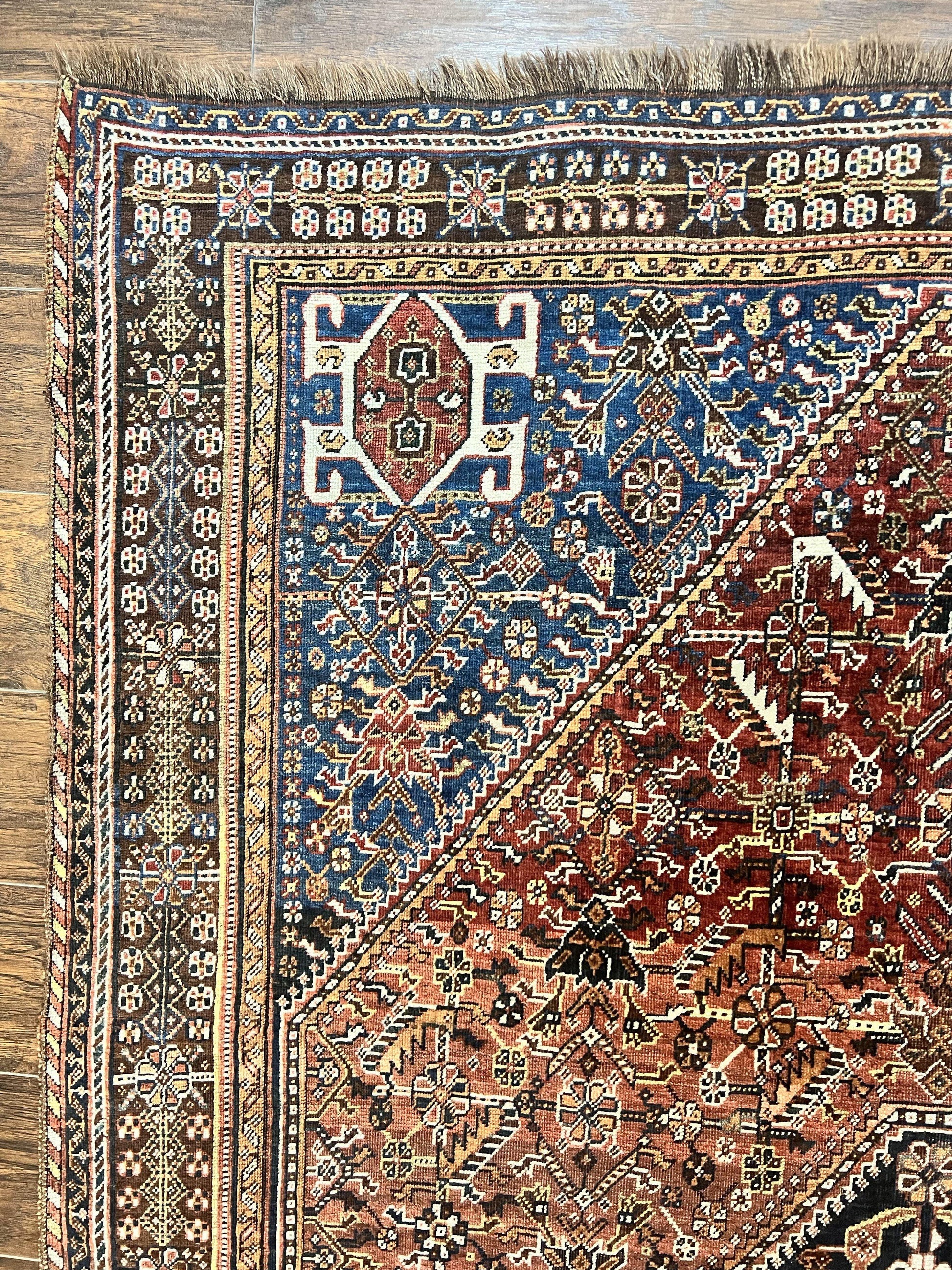 Antique Persian Shiraz Tribal Rug 6x8 Hand Knotted Wool Carpet Red Blue Geometric Design