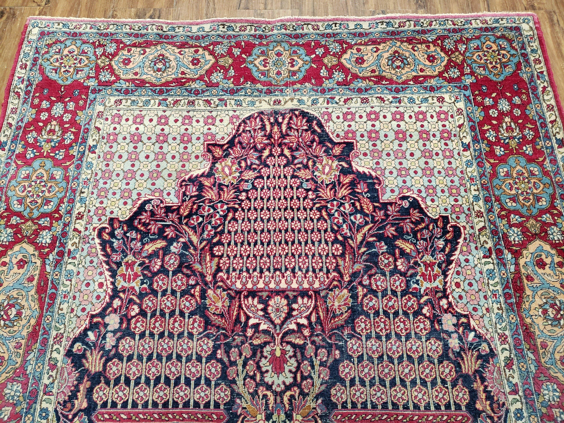 Antique Persian Tehran Rug 5x8, Midnight Blue and Red, Hand-Knotted, Wool