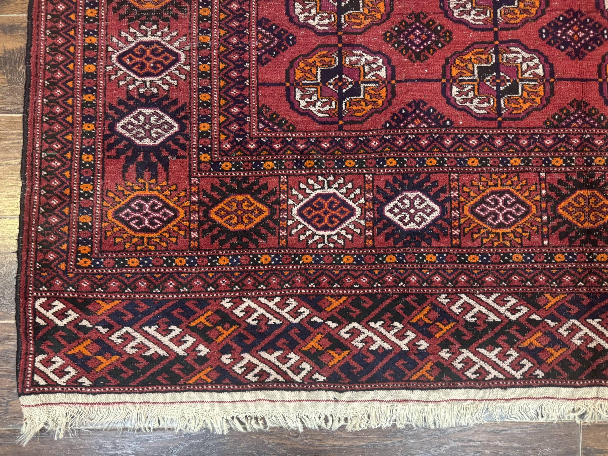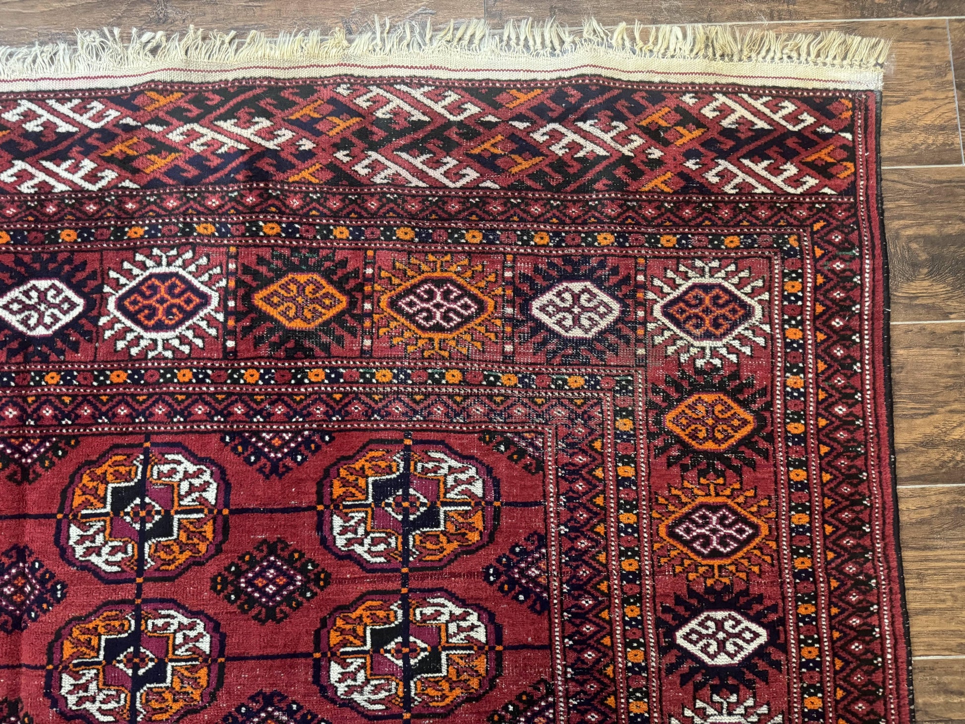 Antique Persian Turkoman Bokhara Rug 7x11, Tribal Rug, Red