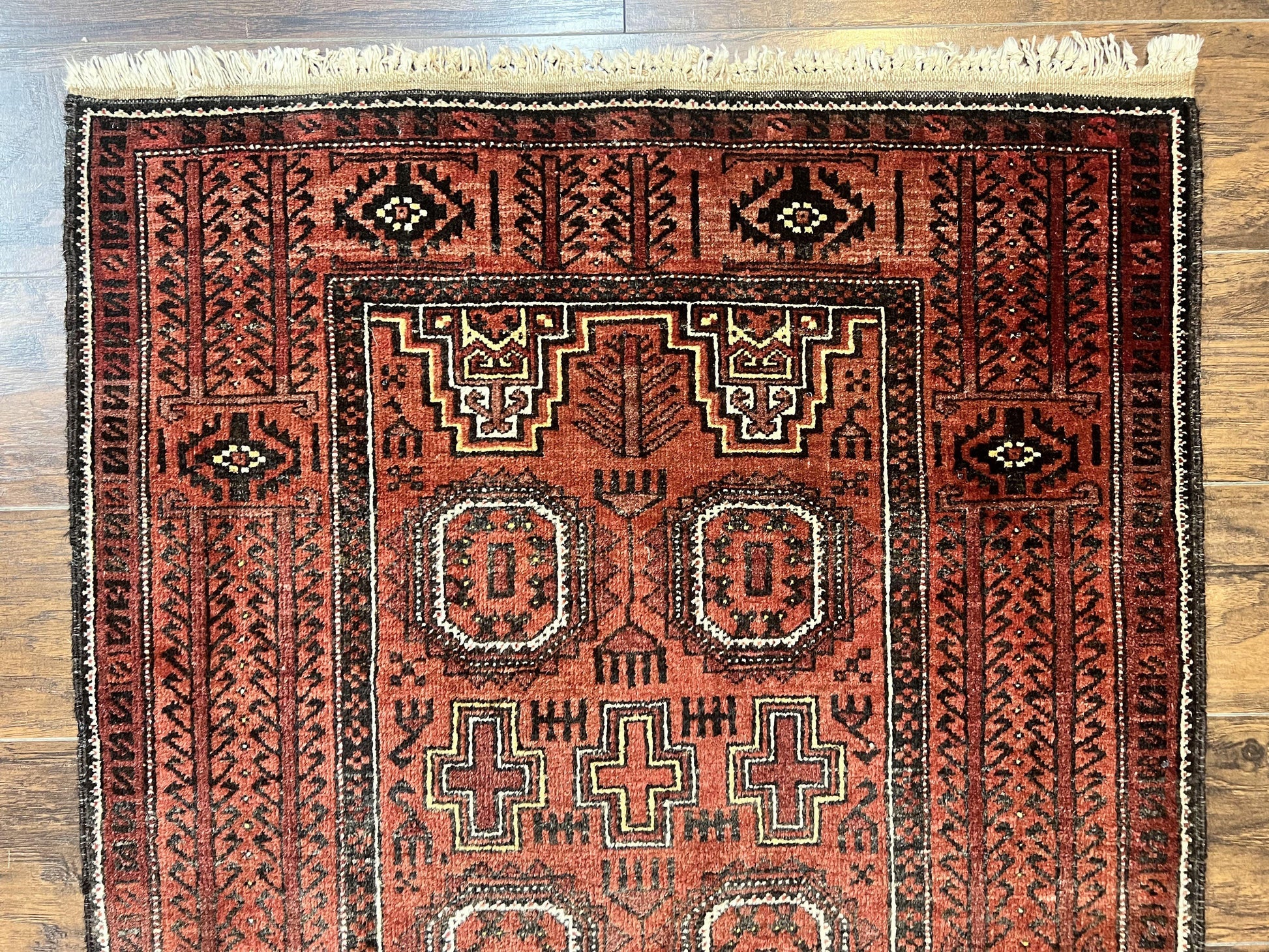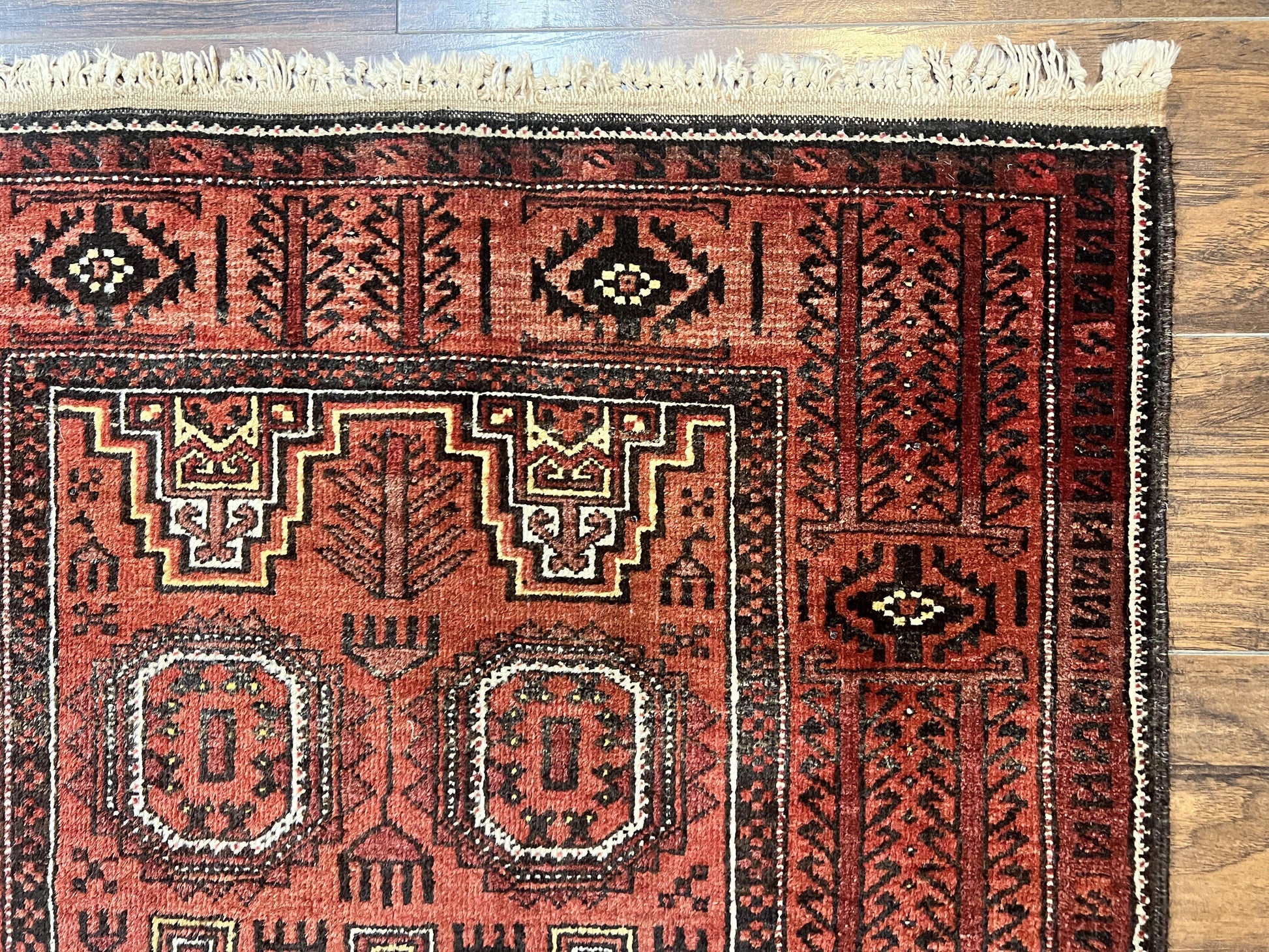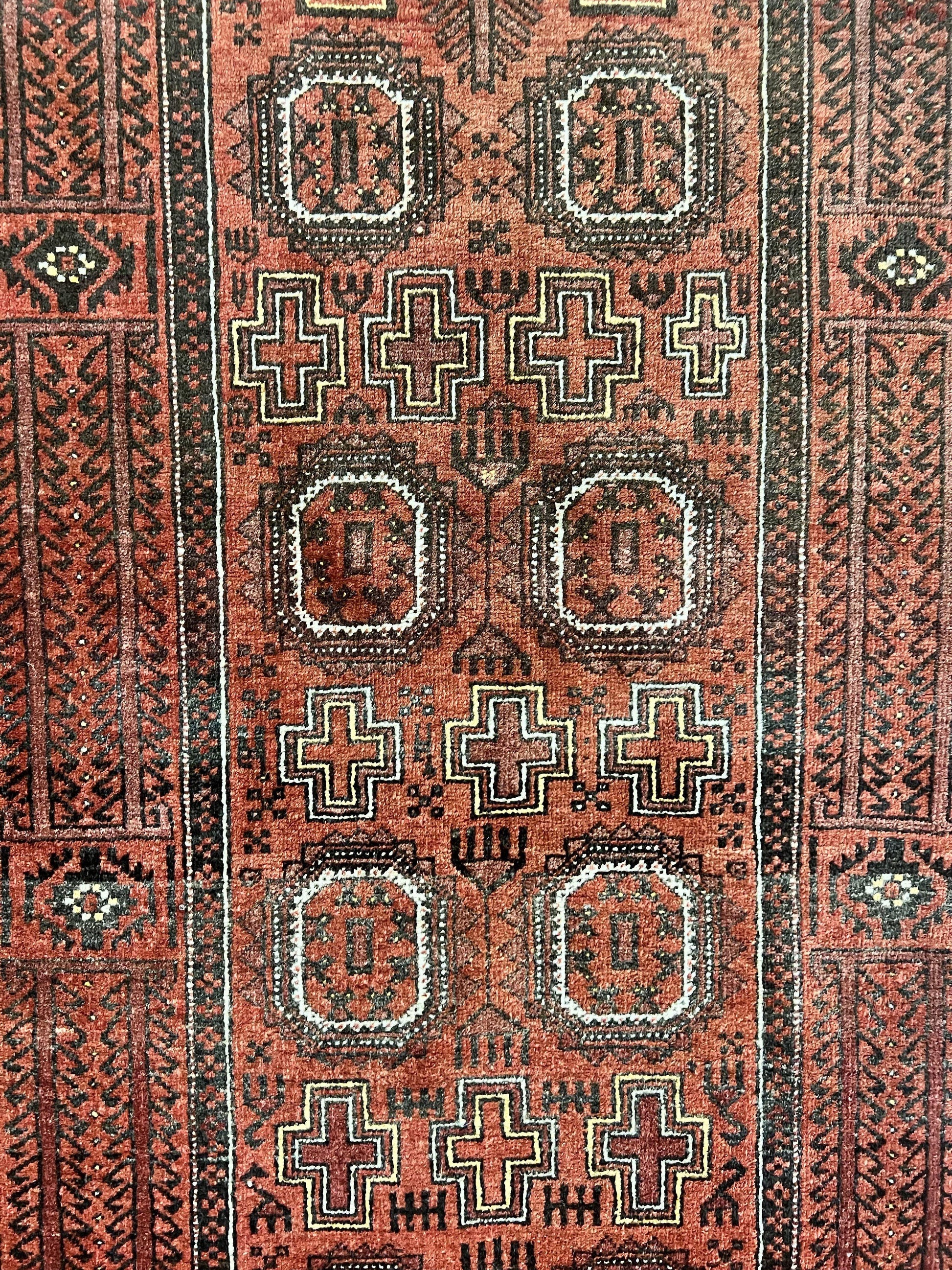 Antique Persian Turkoman Rug 3x6 Wool Tribal Handmade Carpet Red And Black