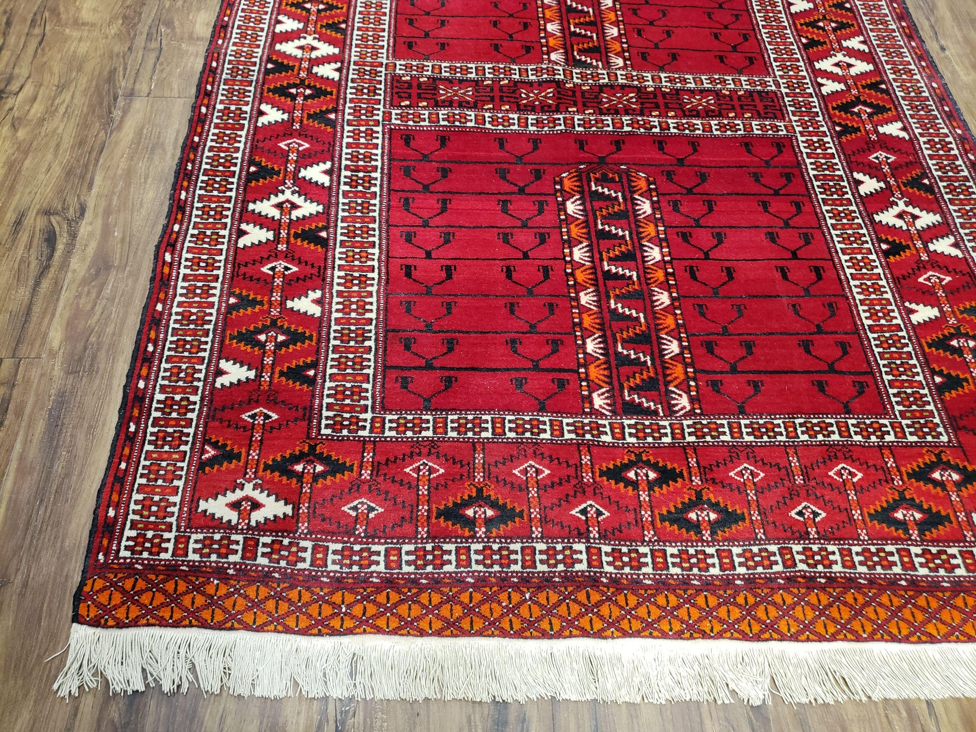 | Condition/Notes | A beautiful Turkoman rug in very good condition. Free of stains, odors, discolorations, tears, etc. Good pile & fringes. Recently cleaned and ready to be enjoyed in your space. |